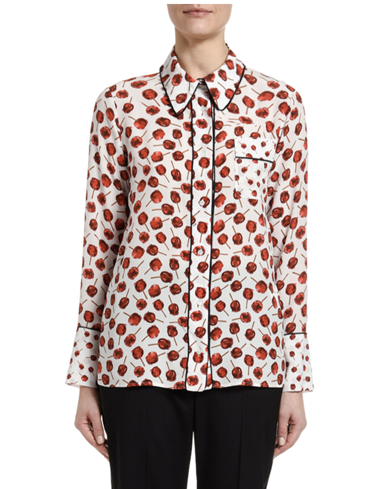 She also looked pretty at lunch in a $665 Candy Apple Printed Blouse by No21: