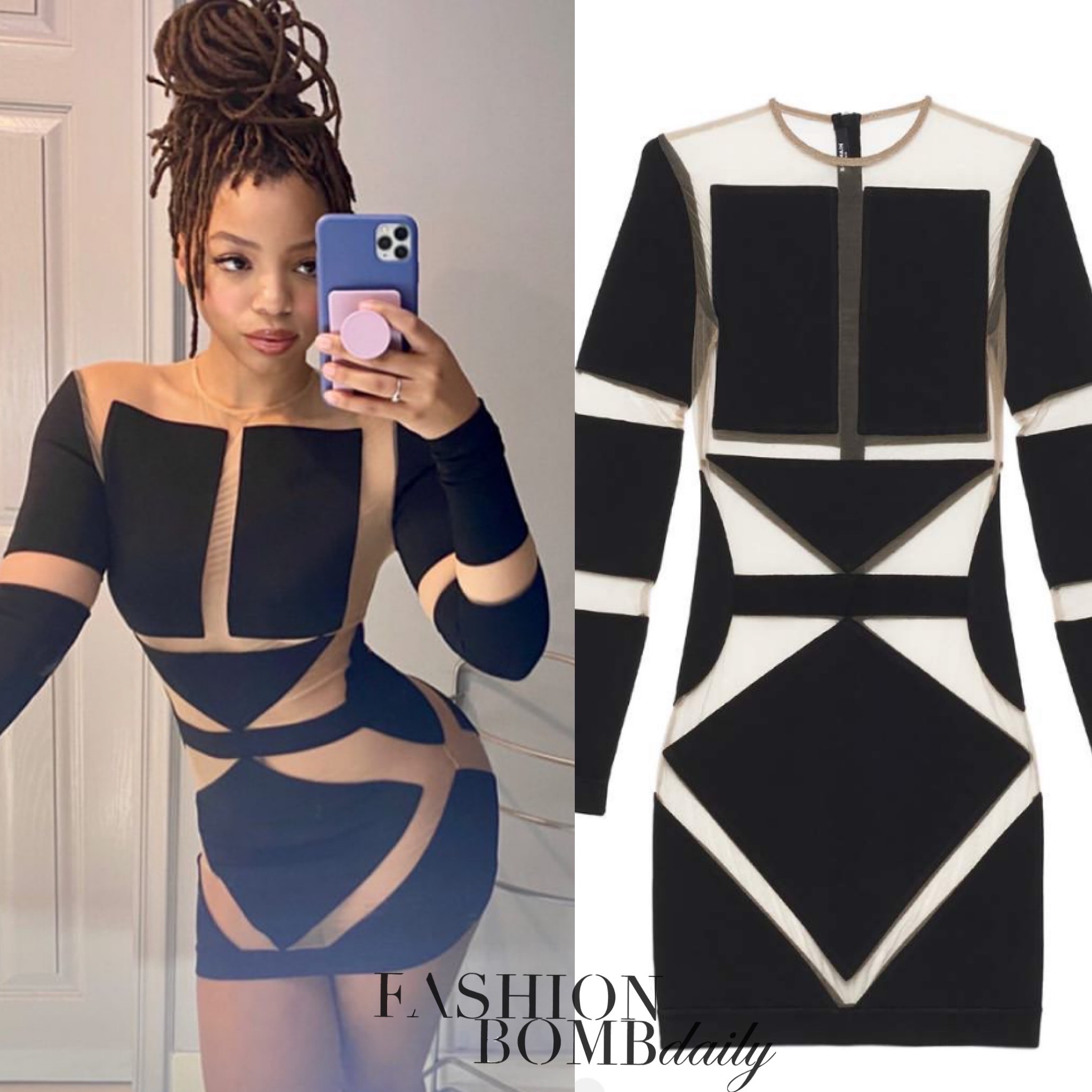 *Chloe posted a mirror selfie in another Balmain Runway dress: