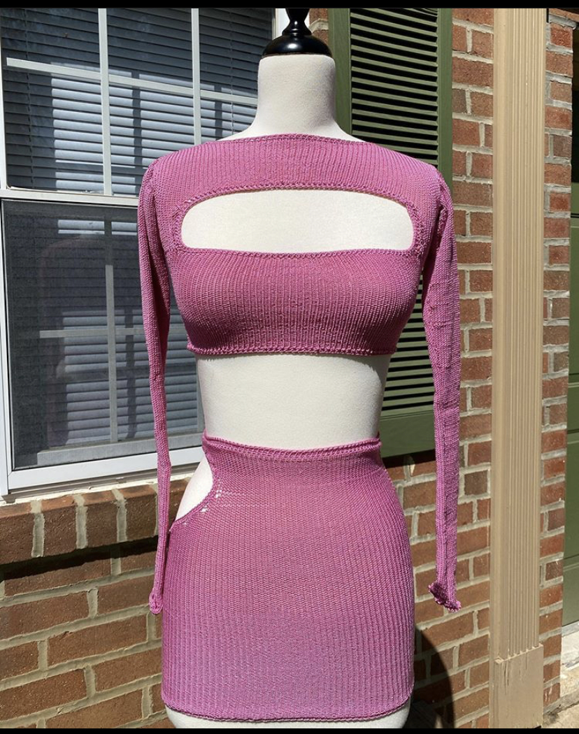 Kim Kardashian posed in her manse wearing clear sandals and a pink set by Jolie by Dia:
