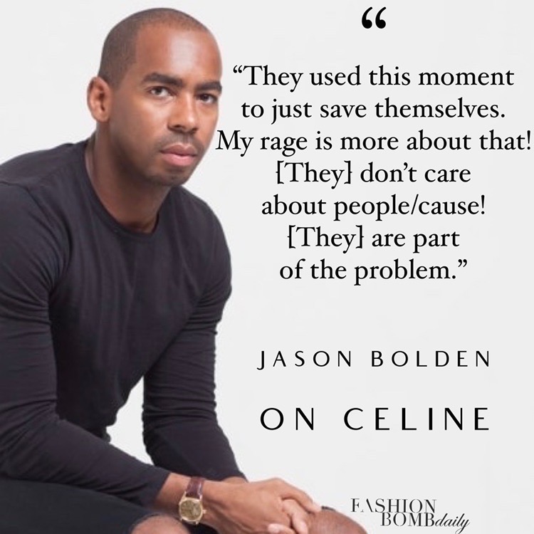 Jason Bolden (stylist to Tariji P Henson, Yara Shahidi, Stormi Reid, Ava Duvernay and more) recently spoke out against french luxury fashion house Celine after they expressed how they stand against all forms of racism. He responded under their post saying, “Wait really, you guys don’t dress any black celebs unless they have a white stylist”. He also provided an exclusive statement to BeautyLifeFun, typing, “They used this moment to just save themselves. My rage is more about that! They don’t care about people/cause! They are part of the problem”