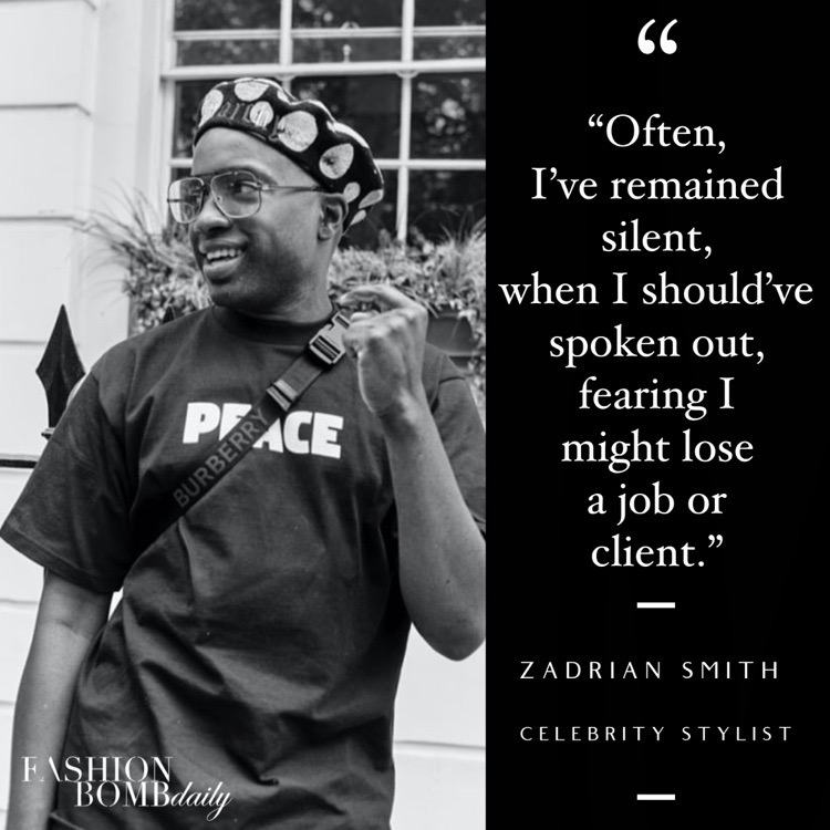 Zadrian Smith spoke about his internal struggle and what he will do moving forward to change the narrative: “As a stylist, working in the fashion industry has not been easy. Often, I’ve remained silent, when I should’ve spoken out, fearing I might lose a job or client. It’s a constant battle of trying to co-exist in rooms and spaces where there’s not a lot of people that look like you. So, you don’t want to be the one to cause a fuss. However, those days are now gone! Moving forward, when I see injustice, I will challenge the status quo to do and be better. What I am personally vowing to do is utilise both my knowledge and resources to service those in marginalised communities so that they can aspire to greatness!“