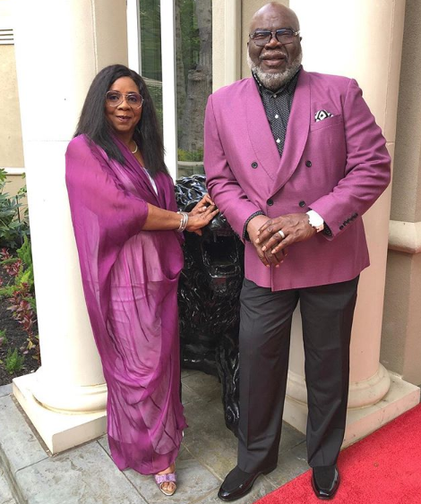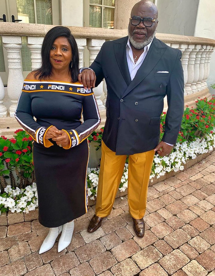 And few of us could forget this color coordinated ensemble, where First Lady Serita Jakes stunned in a Fendi dress, while Bishop posted in a navy and gold suit.