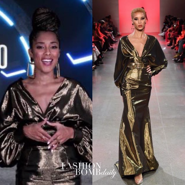 She continued to roc the mic in a gilded dress by Sergio Hudson.