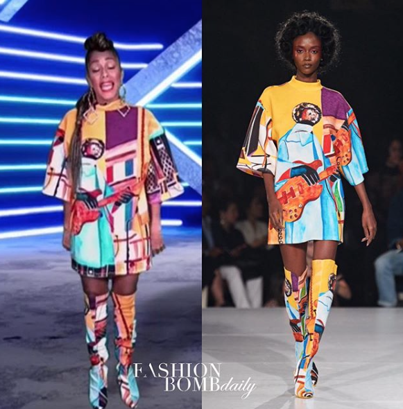 And yet another Pyer Moss ensemble, as she moonlighted on a reimagined set for Comic View.