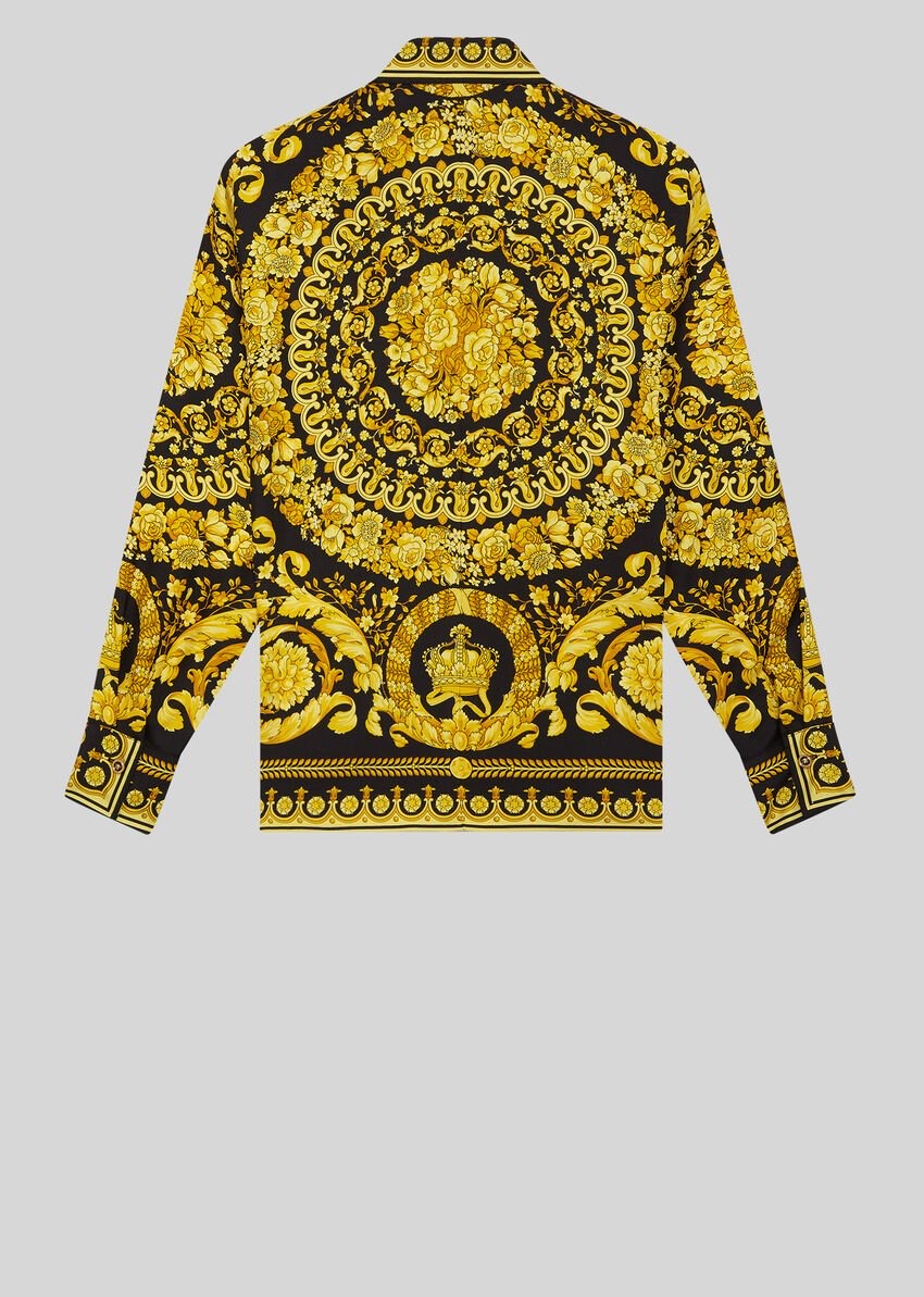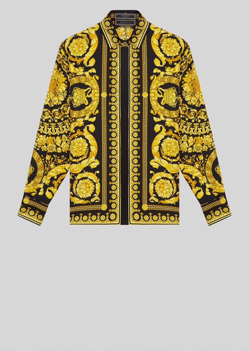 Kandi rocked a gold and black Barocco print silk Versace shirt during a shoot with Will Sterling. She wore the button-up top open, with a black leotard underneath, accessorized with matching gold and black Versace belt and bag.