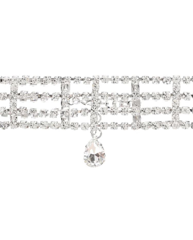 She paired the ensemble with a $311 choker also by Alessandra Rich, suede and crystal embellished sandals by Gianvito Rossi, and long sheer gloves.