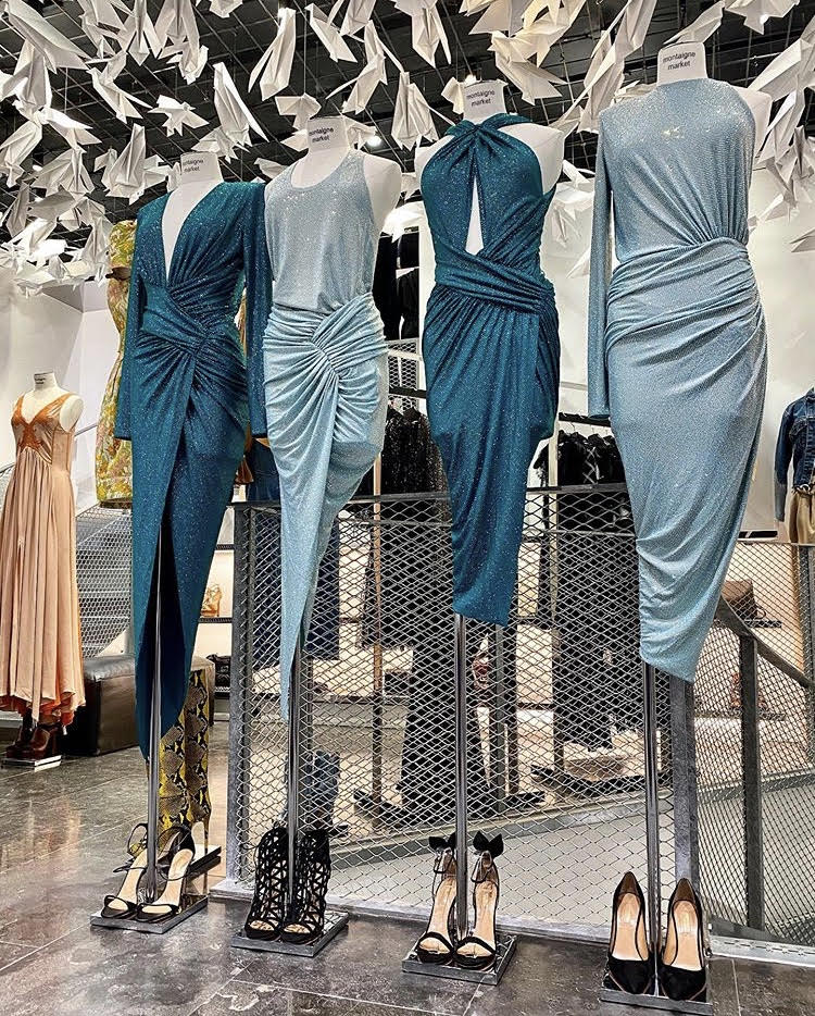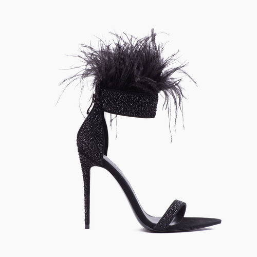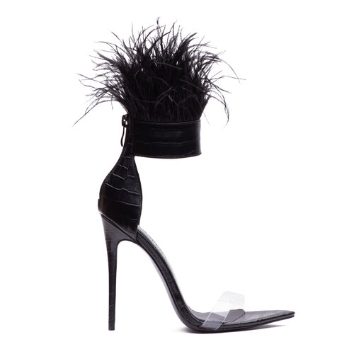 The high slit on both gowns exposed thigh high stockings worn underneath. Both JT and Yung Miami wore heeled sandals by Jennifer Le. Yung Miami wore Jennifer Le’s $399 Croc x Feather sandals while JT rocked Jennifer Le’s $379 crystal x feather sandals.