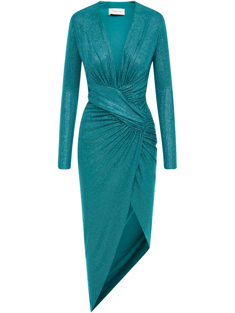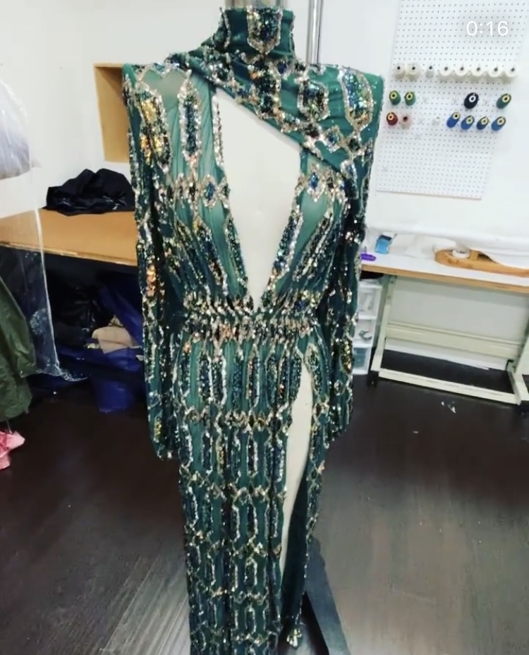 JT looked bomb in a crystal embellished aqua green gown by Alexandre Vauthier. The gown featured a ruched waistline, a plunging neckline, and a high slit.