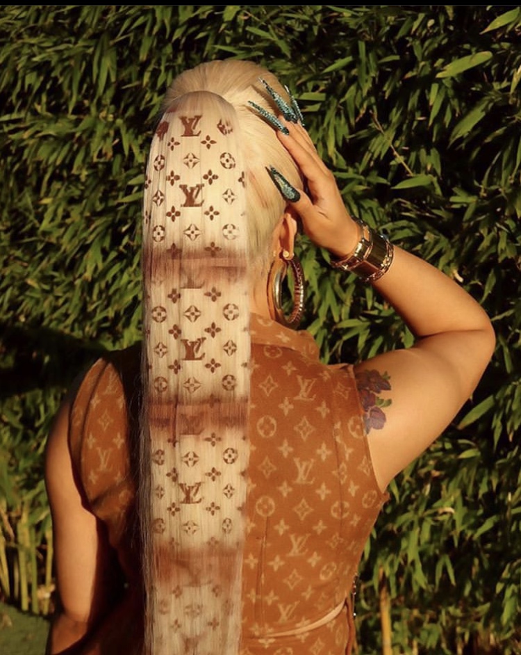 As if that wasn’t enough to give you your fashion fix, Cardi B carried a $3,550 LV Reverse Monogram Petite Boite Chapeau and even had the LV logo printed in her hair, a hair trend kick started by Lil Kim. Now that’s a head- to- toe look.