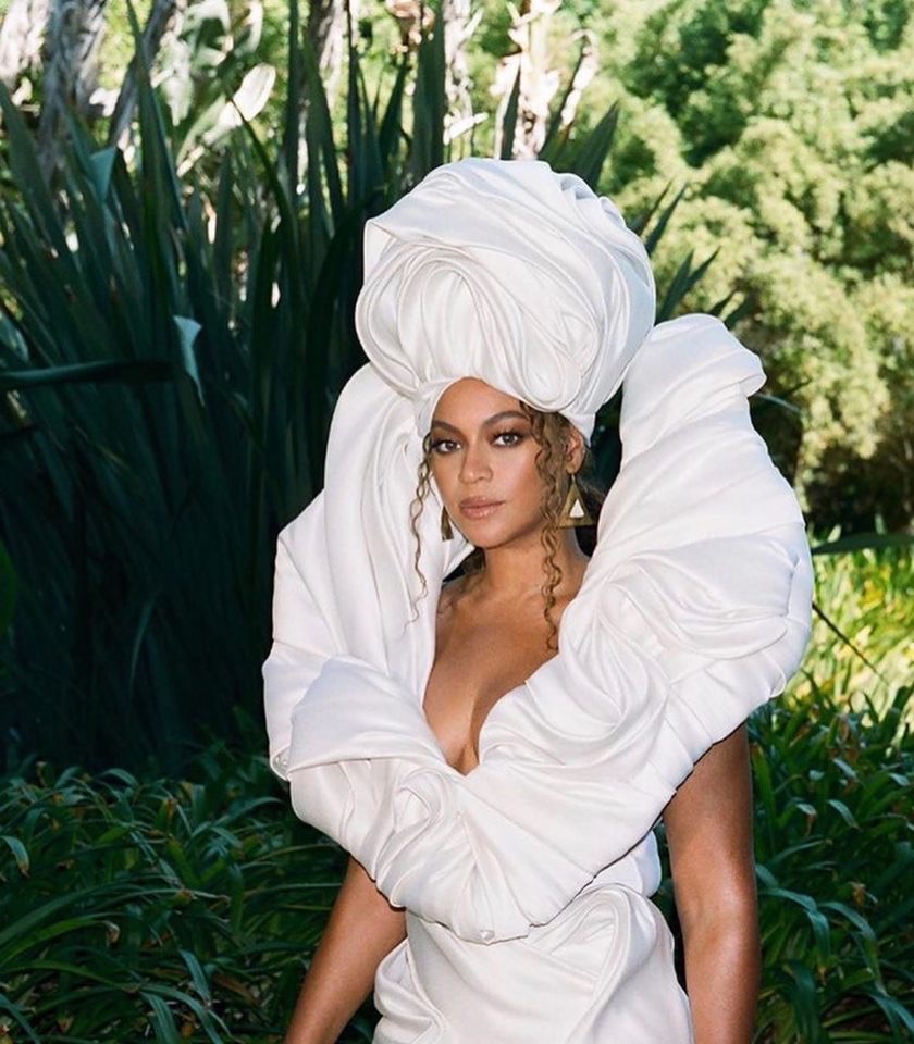 Beyonce was stunning in a headpiece and architectural dress by Alon Livne.