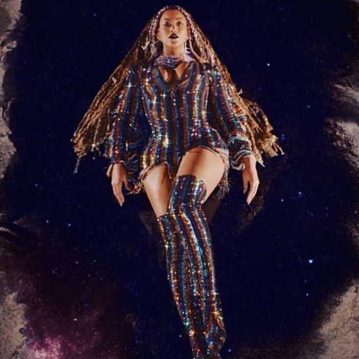 Another custom look created for Bey? A black tulle dress by Timothy White.