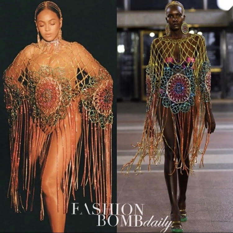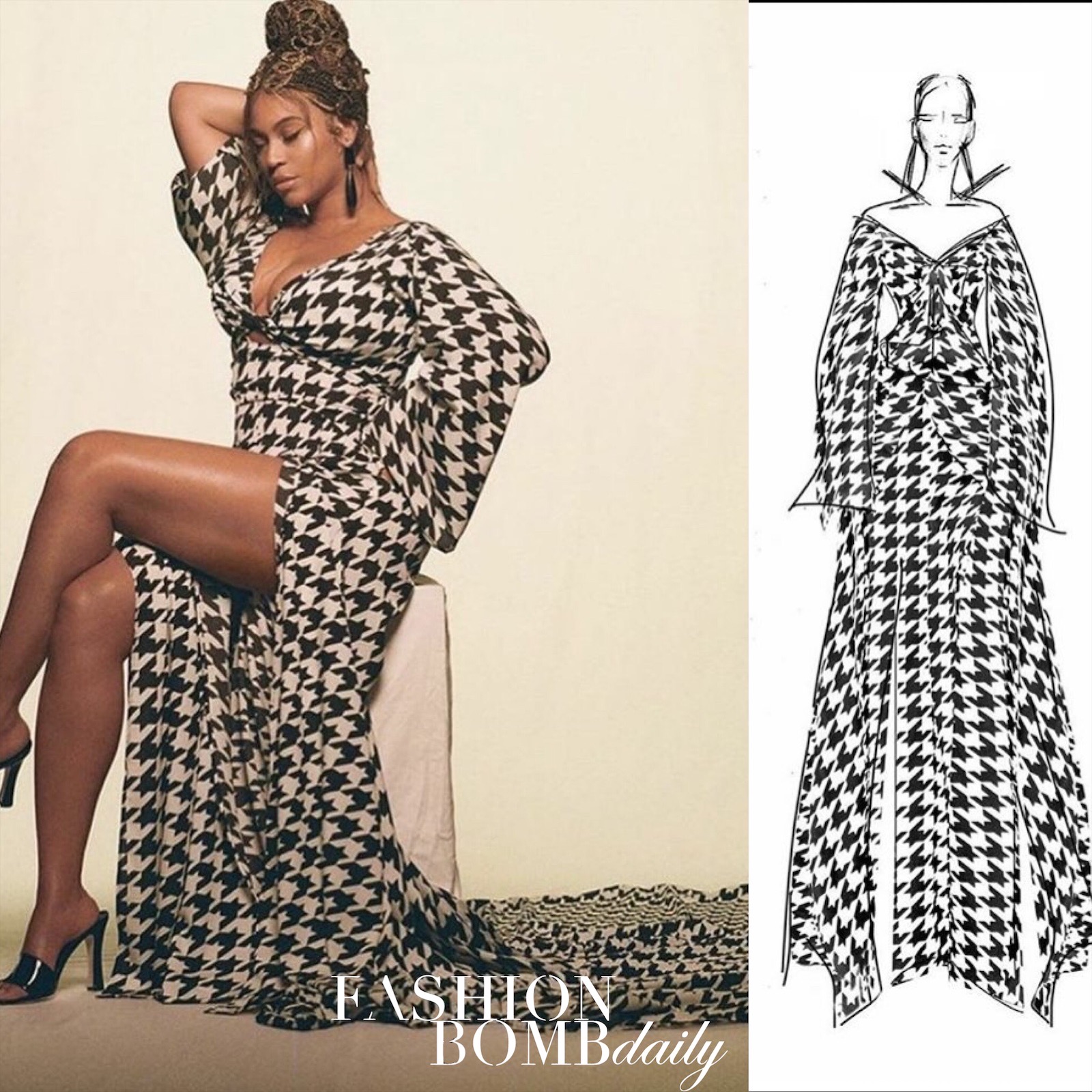 Beyonce performed “Brown Skin Girl” wearing Tongoro’s BIRIMA houndstooth printed gown dress.