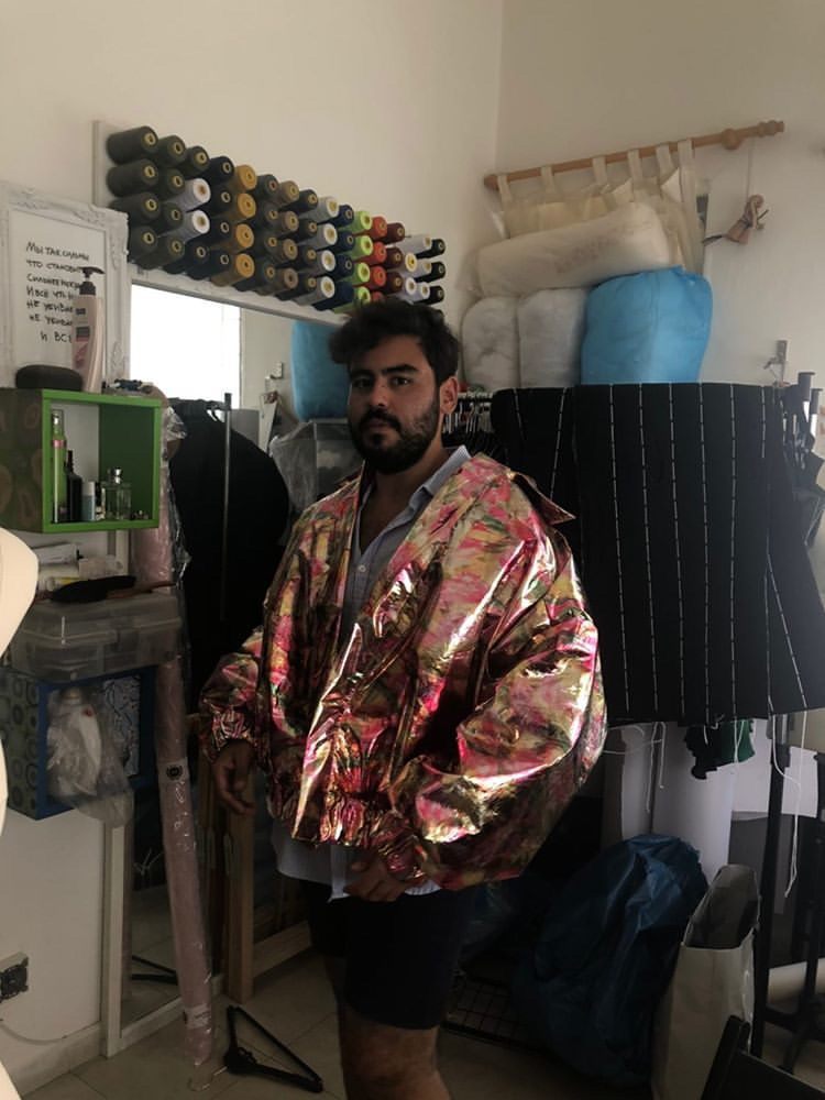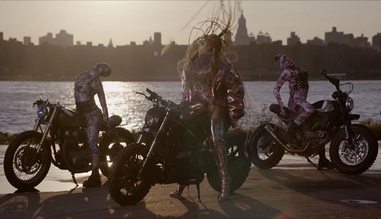 She posed on a motorcycle accessorizing the bodysuit with a iridescent floral jacket and boots by @Avyamram, who was kind enough to model the jacket himself: