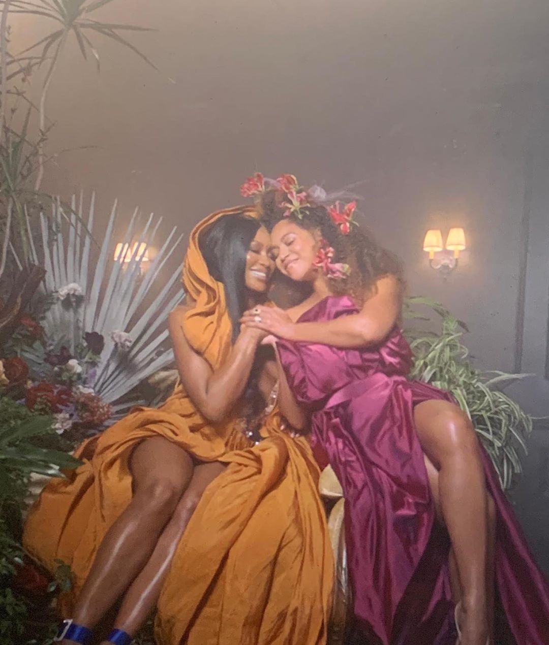 And Beyonce and Naomi Campbell shared a tender moment, with Beyonce in Monsoori.