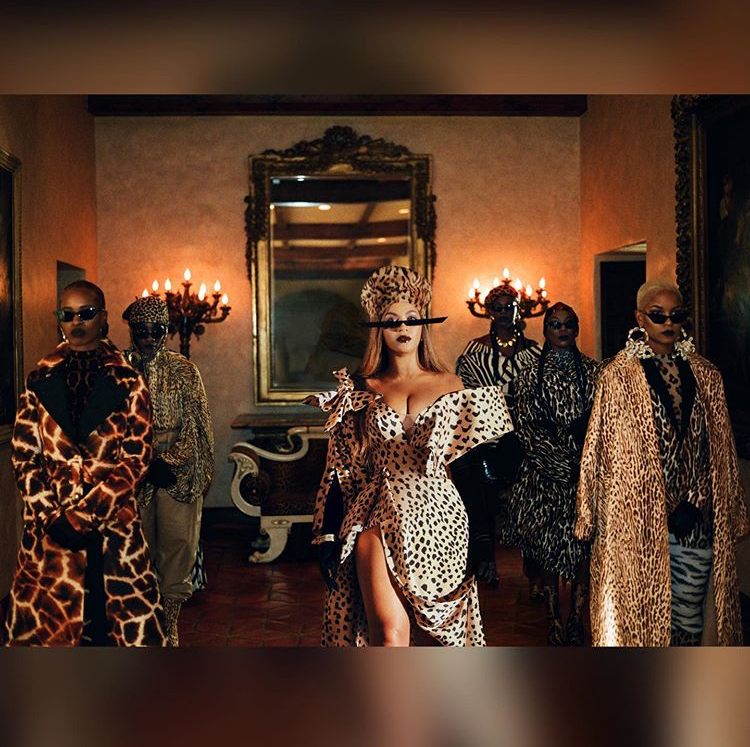 During the “Mood 4 Eva” video, the female security team rocked out along side Beyonce in head-to-toe animal print attire. These looks were put together by wardrobe stylist Zerina Akers and Brookelyn Styles.