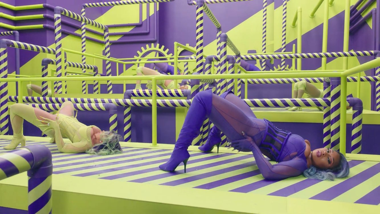 Megan and Cardi closed out in Venus Prototype Latex ensembles during this last shot from the video! All of Cardi and Megan’s looks were styled by their stylists in crime, Kollin Carter and EJ King.