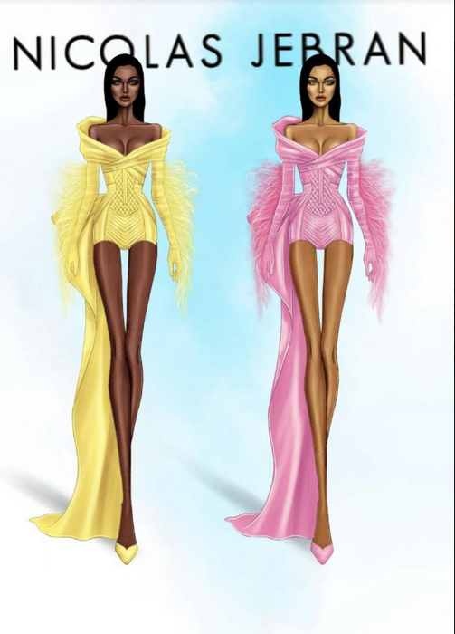 Cardi B and Megan Thee Stallion opened the “WAP” video in pink and yellow looks by Nicolas Jebran.