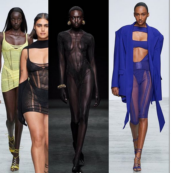 Singer and dancer Normani made an appearance in “WAP” wearing a look by Venus Prototype Latex which is inspired by Naomi Campbell’s houndstooth Alaïa look from 1991.