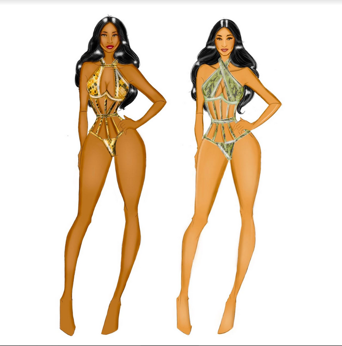Cardi and Megan were spotted in custom Bryan Hearns swimsuits surrounded by snakes.