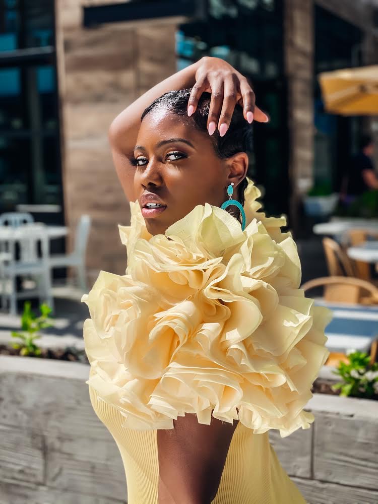 She says, “My style is very becoming with an editorial fun flare. I like to be unpredictably innovative and timeless. My melanin is my favorite accessory!”