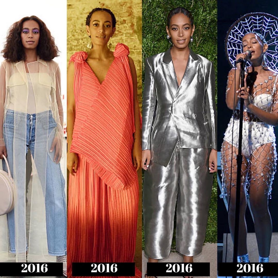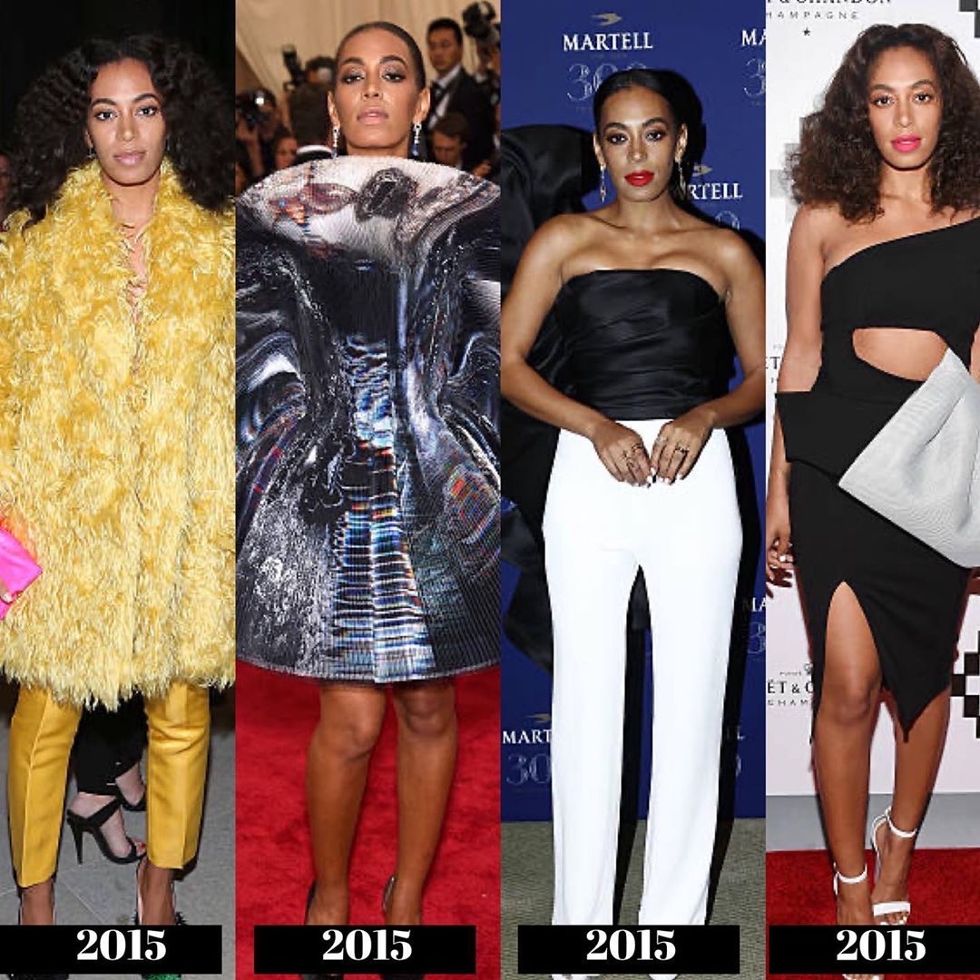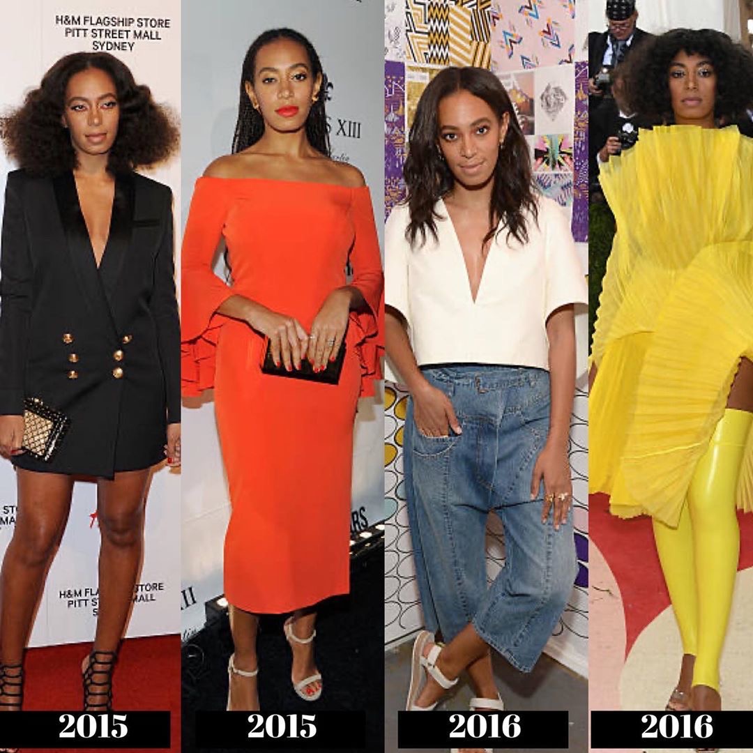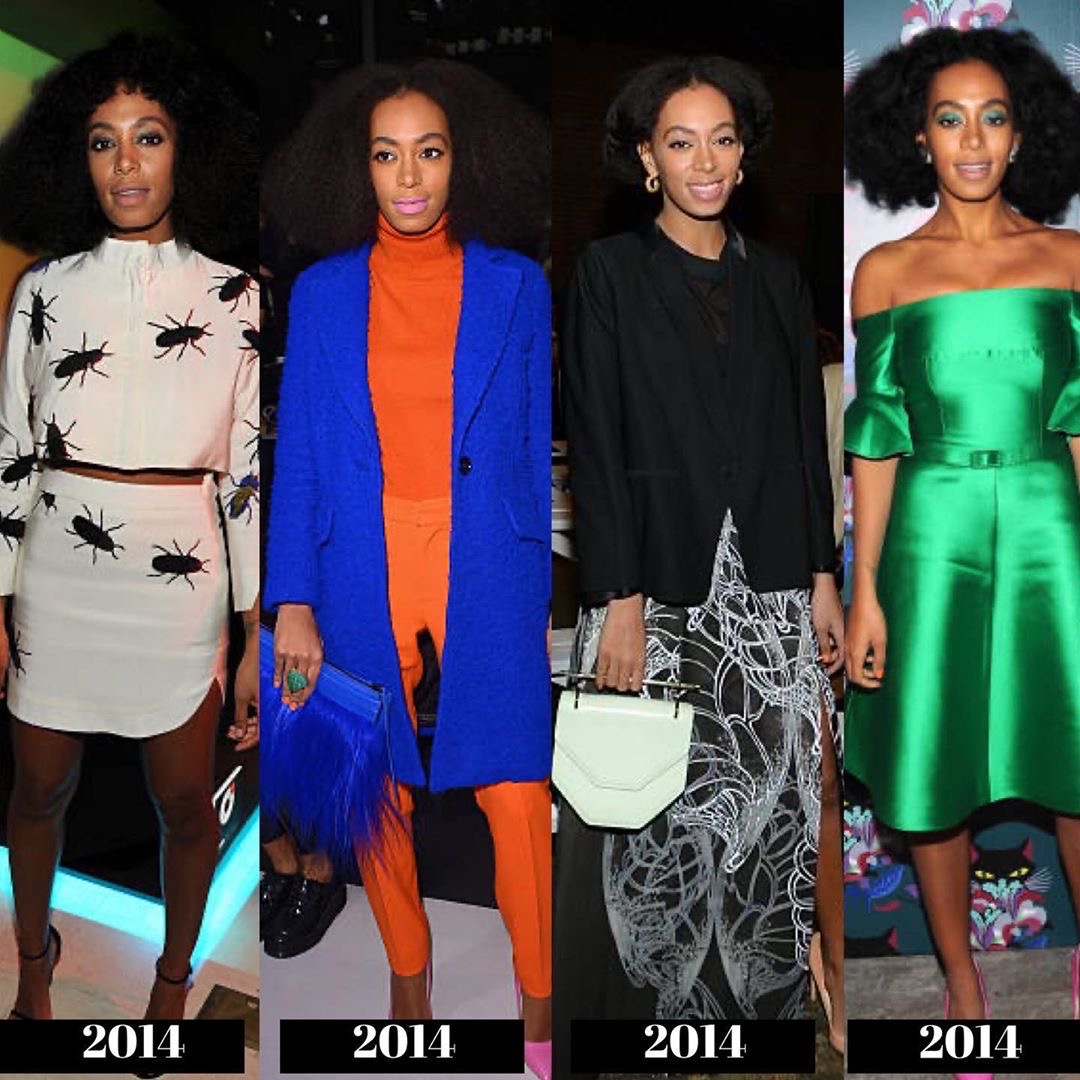 During the 2010s, we see Solange began to experiment more with bold prints and styles, giving us a high fashion meets Boho-chic Black girl vibe! She starts to explore the “unconventional” more with her style to reflect the direction of her music.