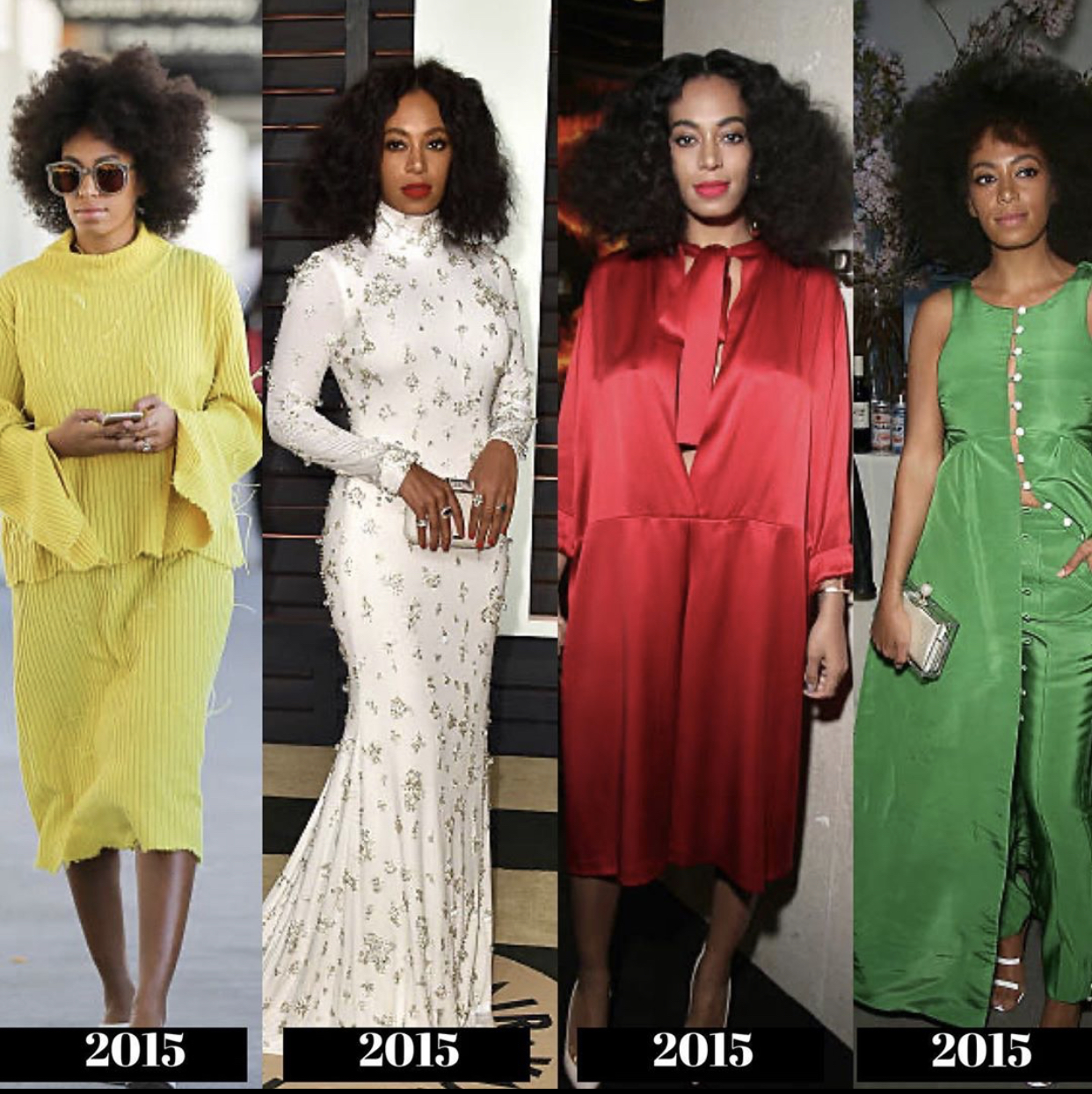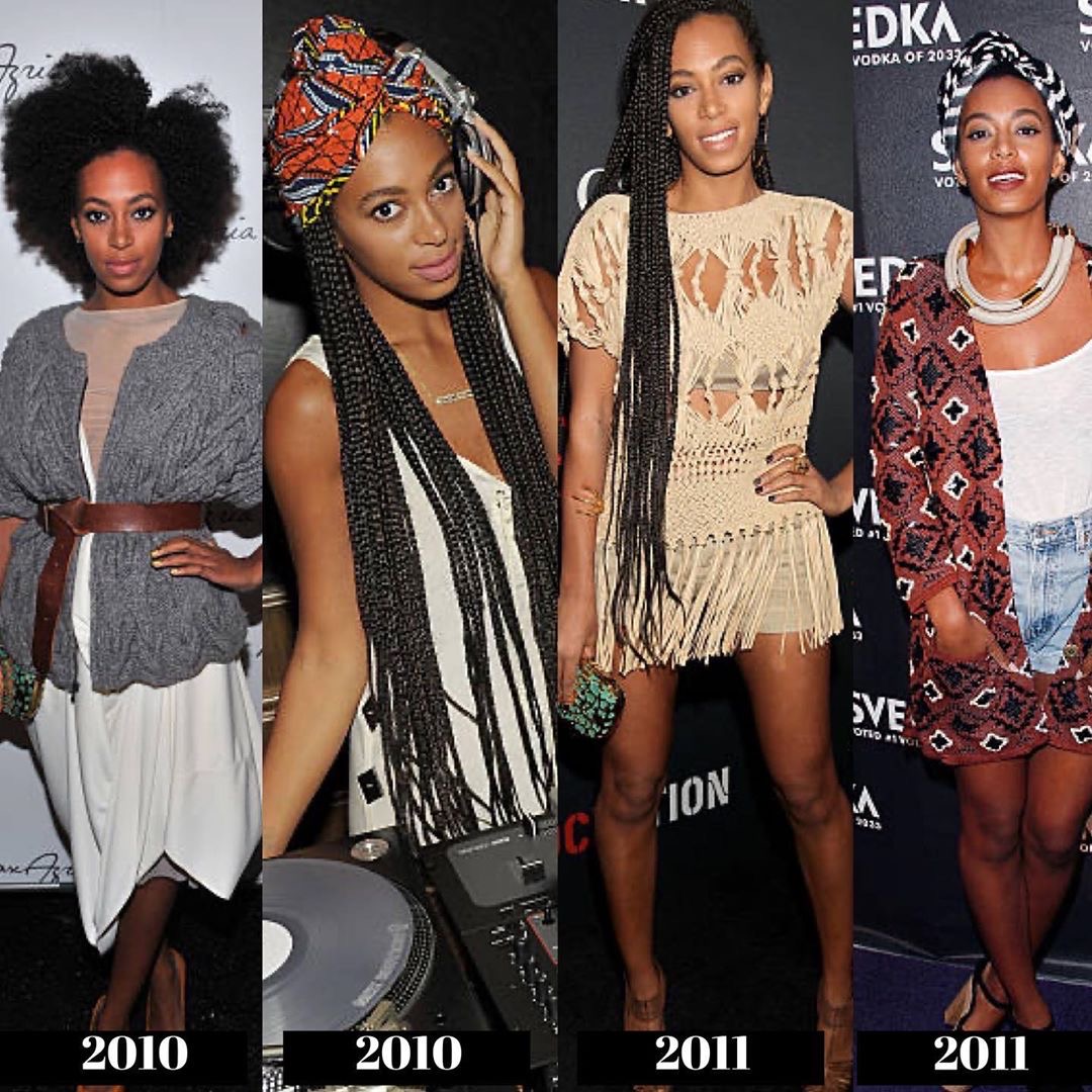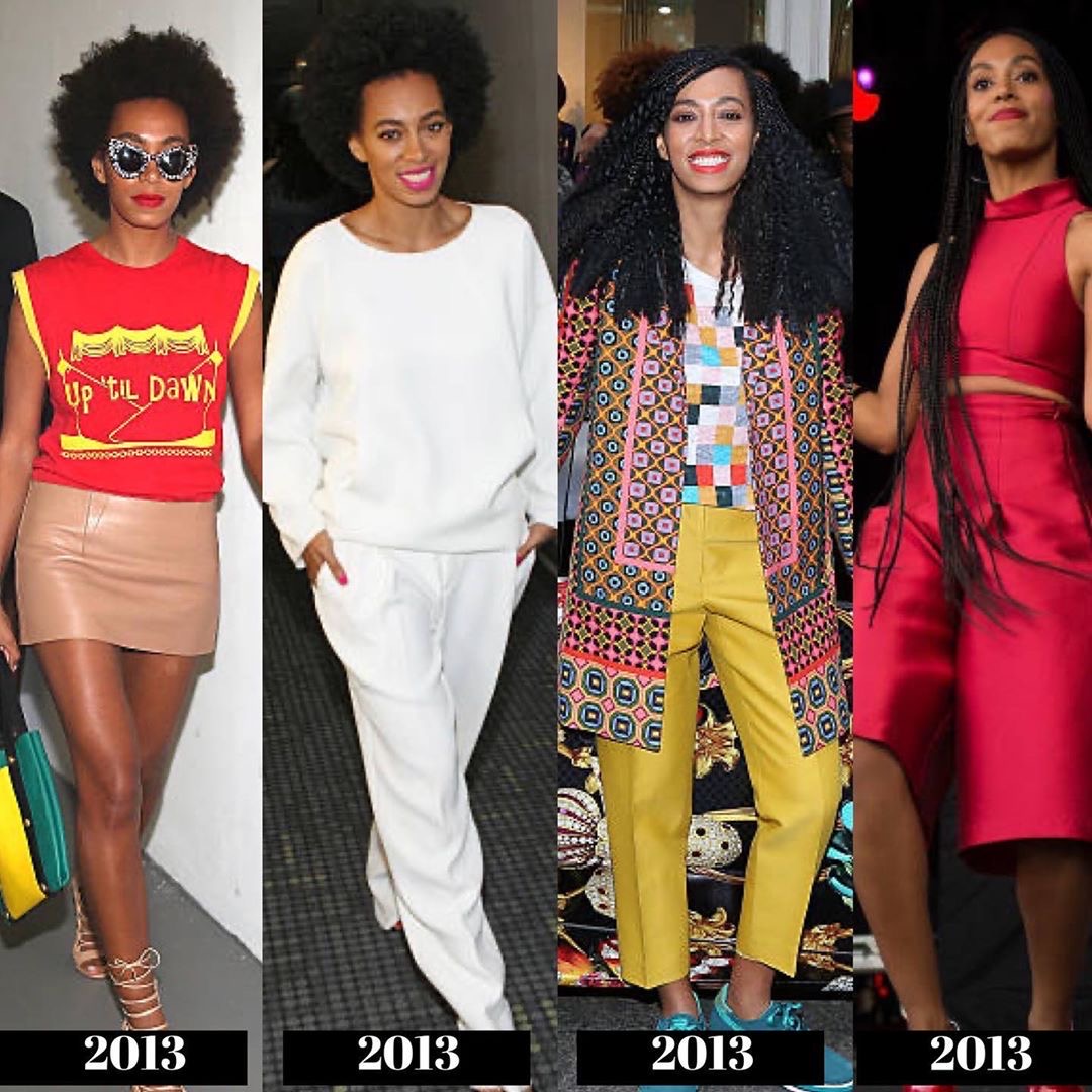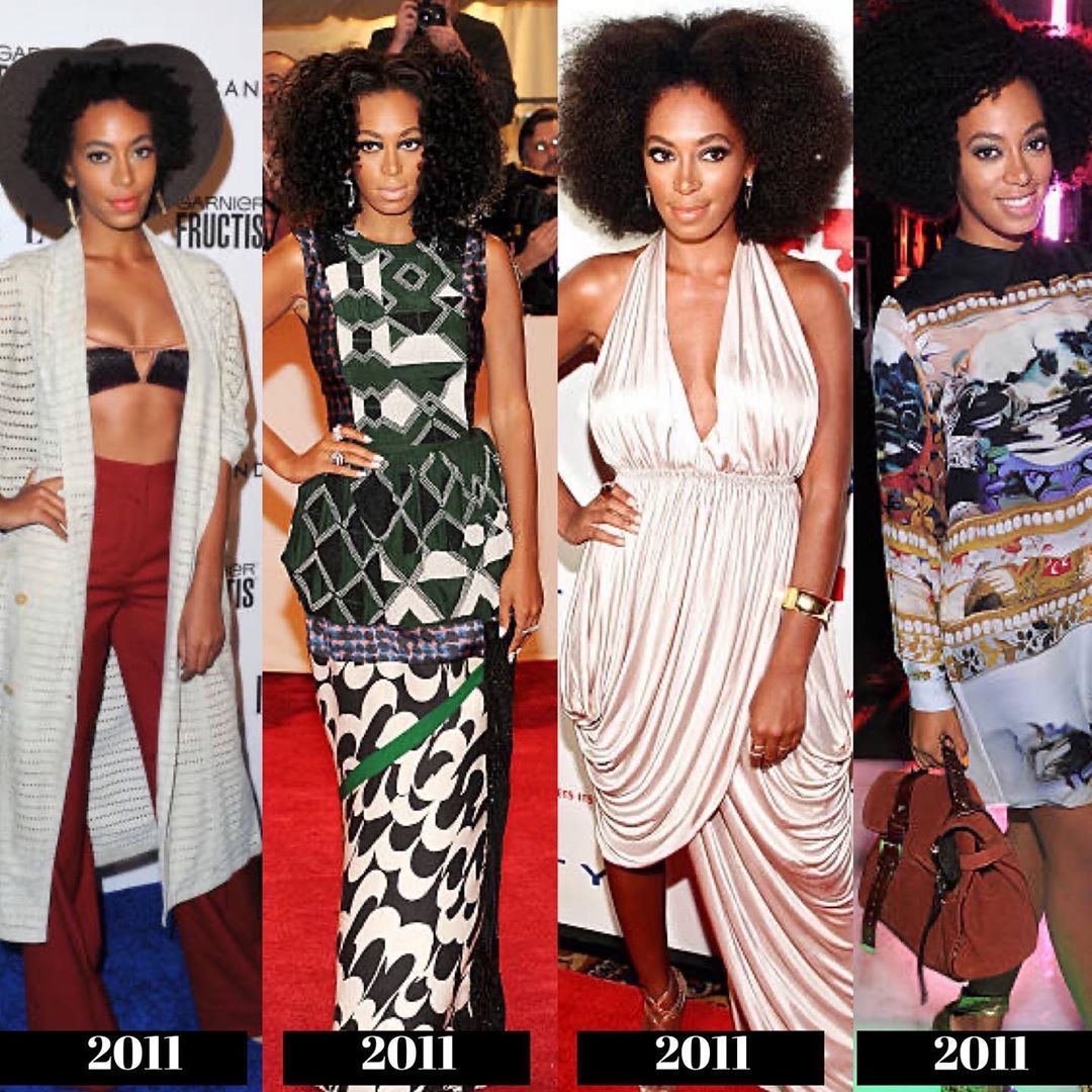 During the 2010s, we see Solange began to experiment more with bold prints and styles, giving us a high fashion meets Boho-chic Black girl vibe! She starts to explore the “unconventional” more with her style to reflect the direction of her music.