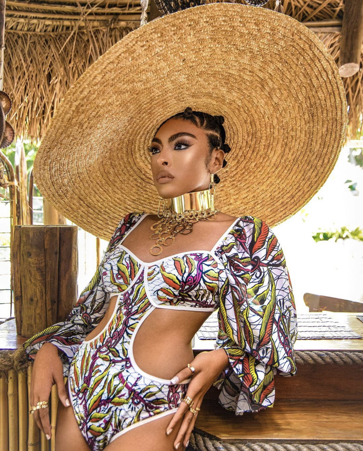 Known as “Le Voyagé”, the swim collection is meant to convey life before the pandemic with nods to Claude’s roots in Cameroon. According to Claude herself, she wanted to “bring you back to how the world was before; just as vibrant, inspiring, and ready to explore again.” Le Voyagé was also heavily influenced by her home country Cameroon where her passion for fashion blossomed. She details how her father’s traveling company posed as an inspiration for the upcoming collection, expressing how she admired “how he could provide customers the means to see the world and fulfill their dreams.”