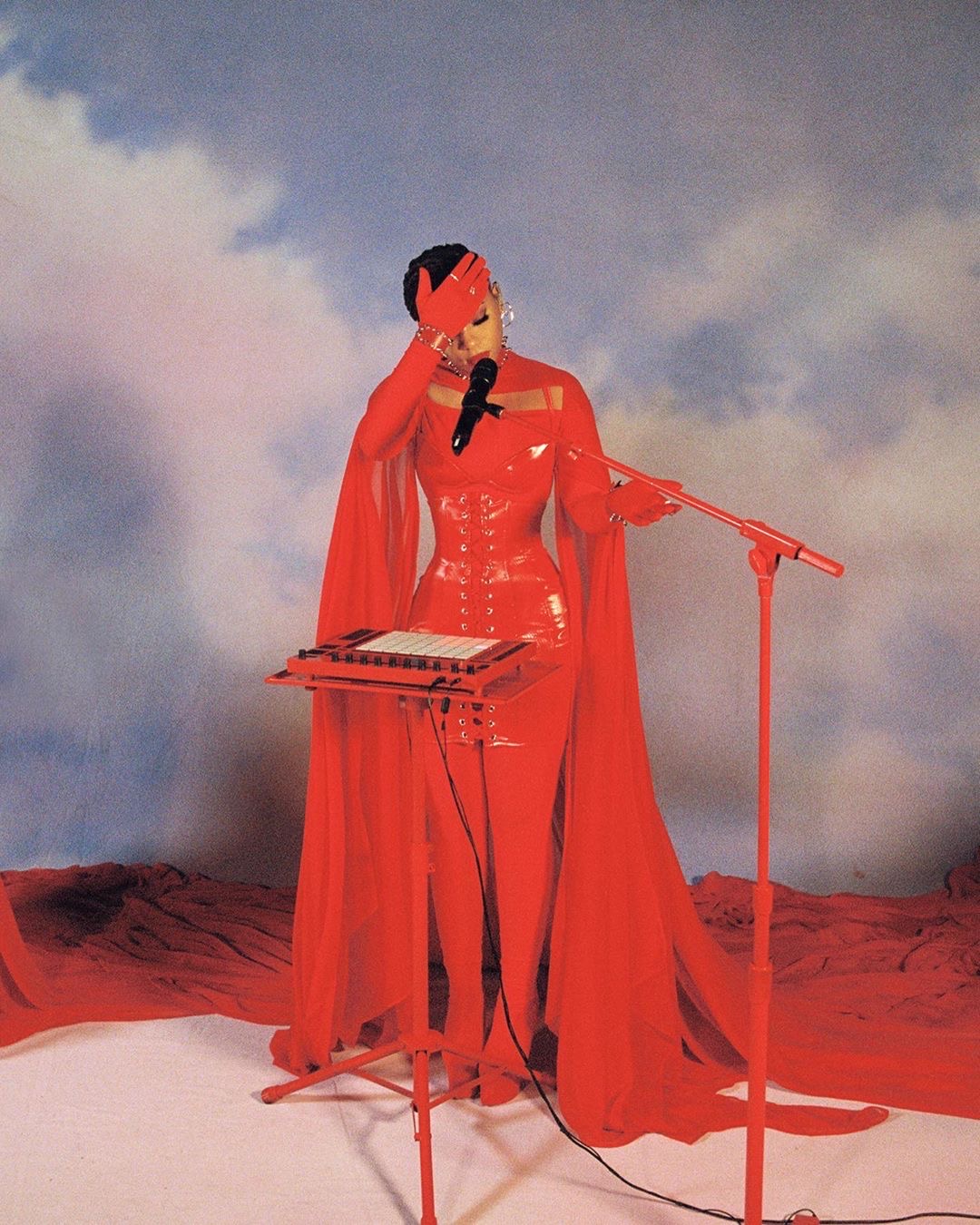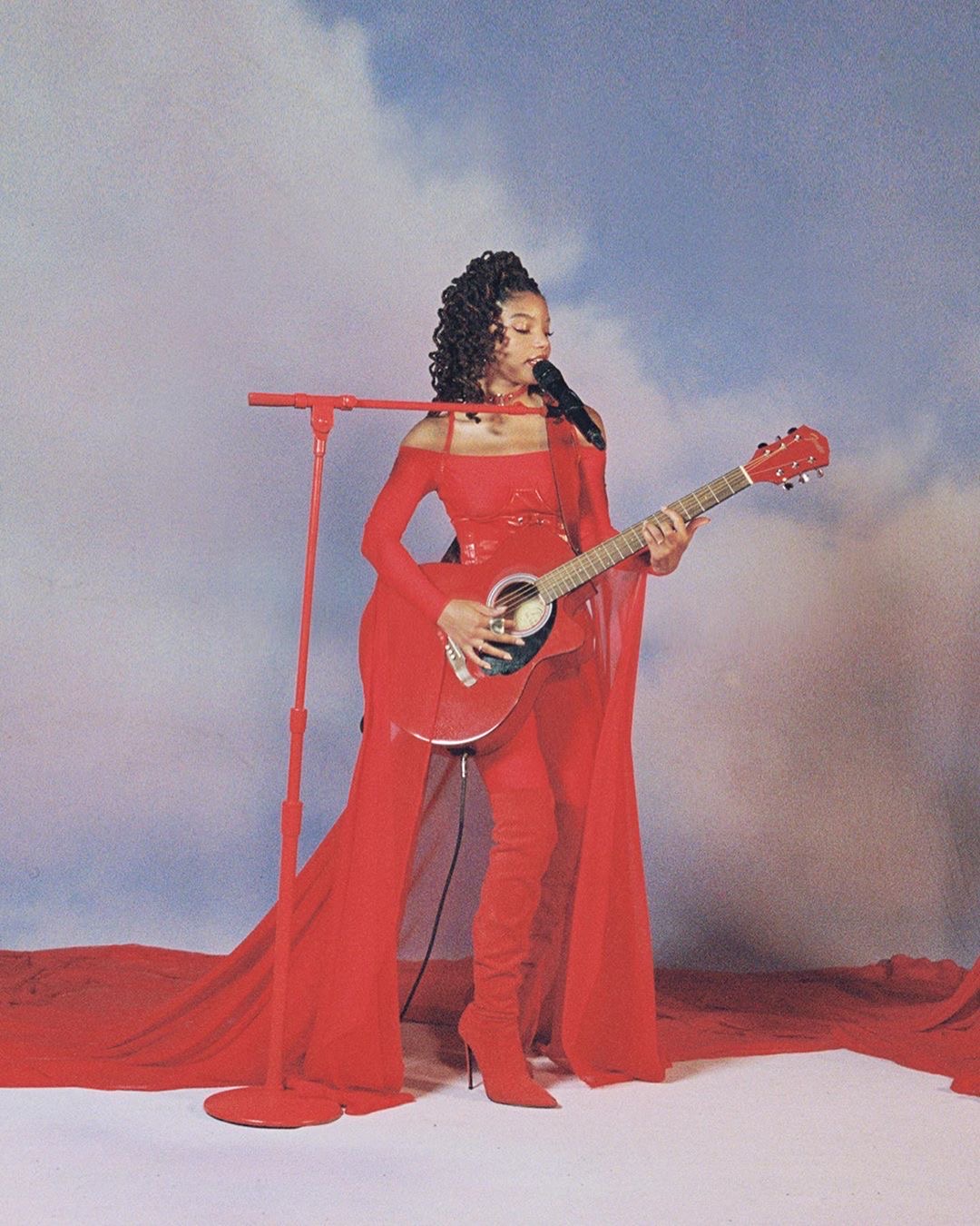 Chloe and Halle wore red outfits by Delia Alleyne and accessories by Zana Bayne, styled by Zerina Akers.