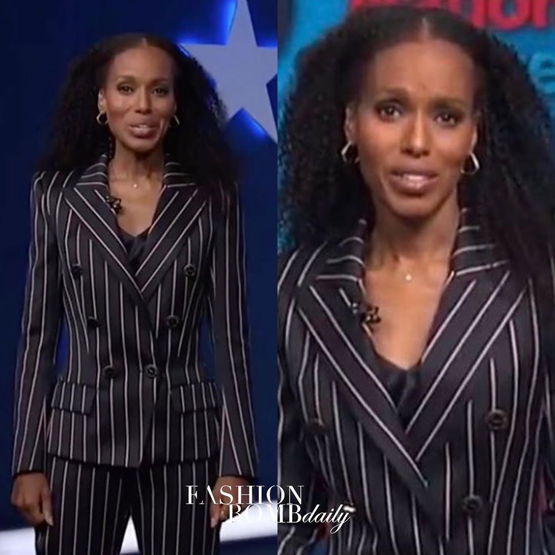 With the theme of “A More Perfect Union” in place for the convention, Kerry Washington hosted the second night of the convention where she delivered a moving speech in an Alexandre Vauthier pin-stripe double breasted suit, highlighting the struggles of women and the Black community to be apart the Union.