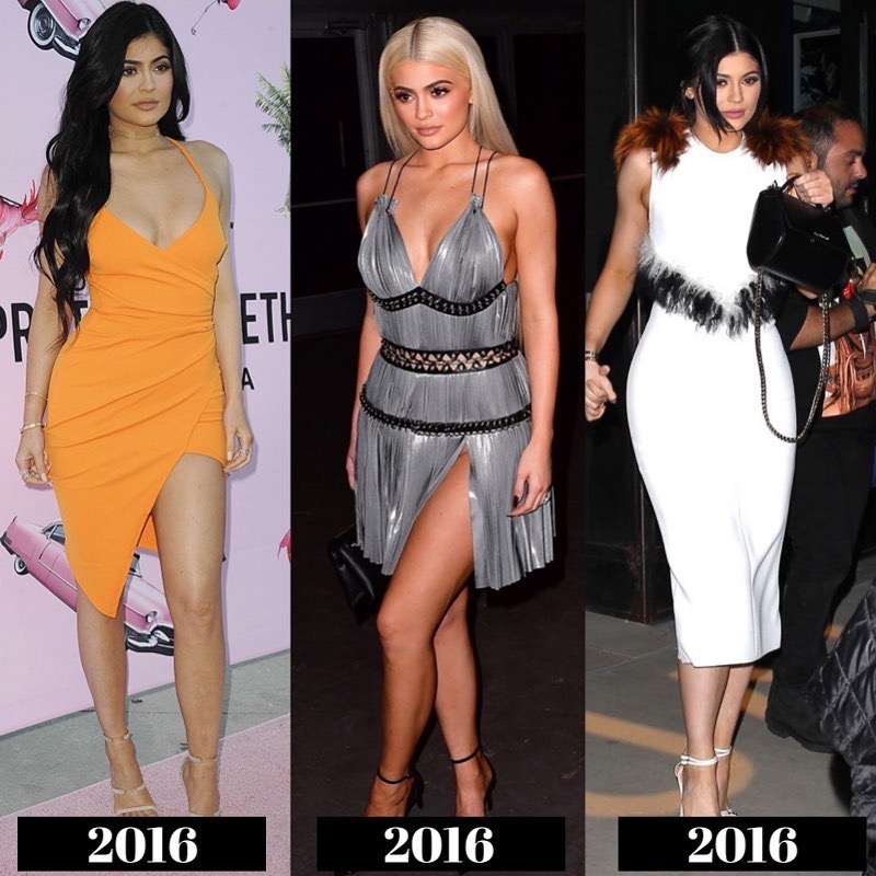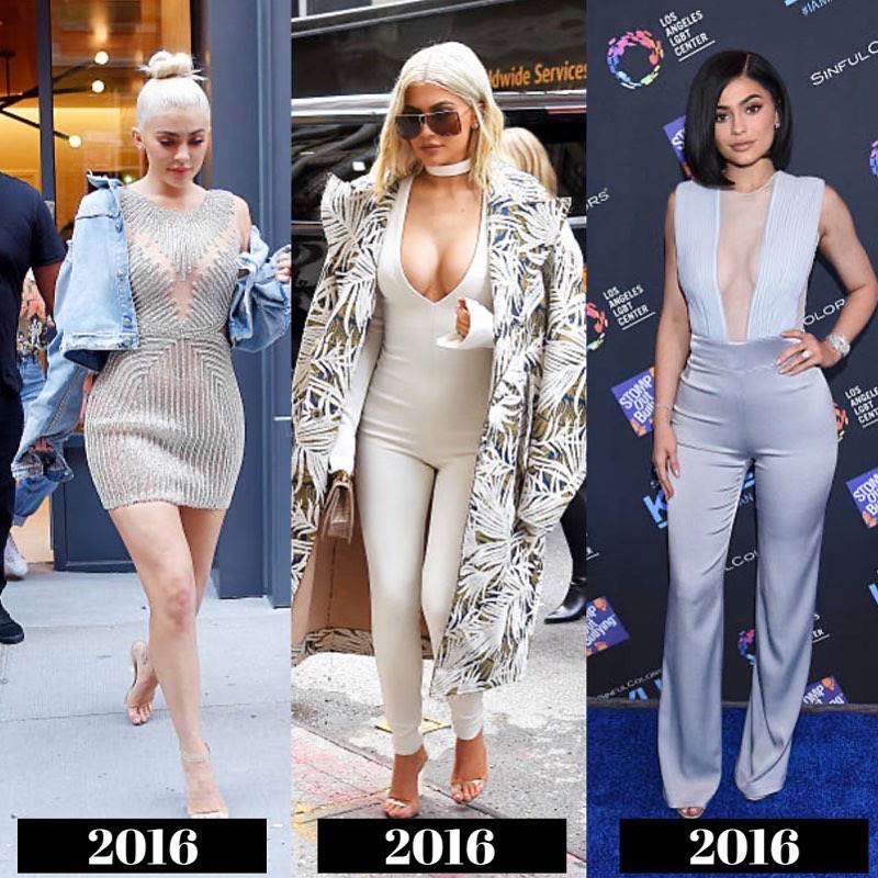 As she turned into a young woman, she took a more edgy and sexy approach to her wardrobe. Figure hugging pieces, slits and cleavages entered the scene. She also started experimenting more with her hair colors and styles, being perhaps the Kardashian-Jenner sister that plays more in that aspect.
