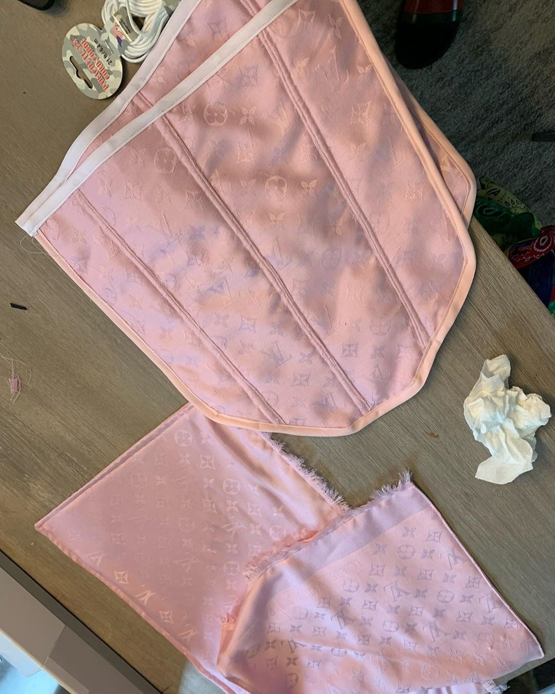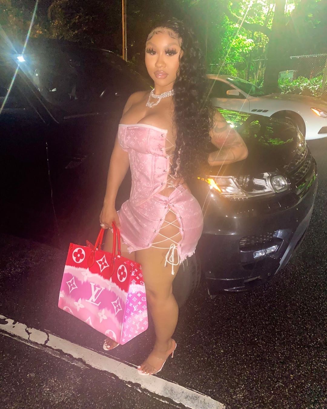Ari wore a custom Louis Vuitton corset and skirt look by Jeff Austin which was made from a Louis Vuitton scarf. She accessorized the custom look with Louis Vuitton’s immensely popular Escale Onthego GM bag and $695 Christian Louboutin Just Nothing Illusion Red Sole Sandals. Her look was styled by @therichex_.