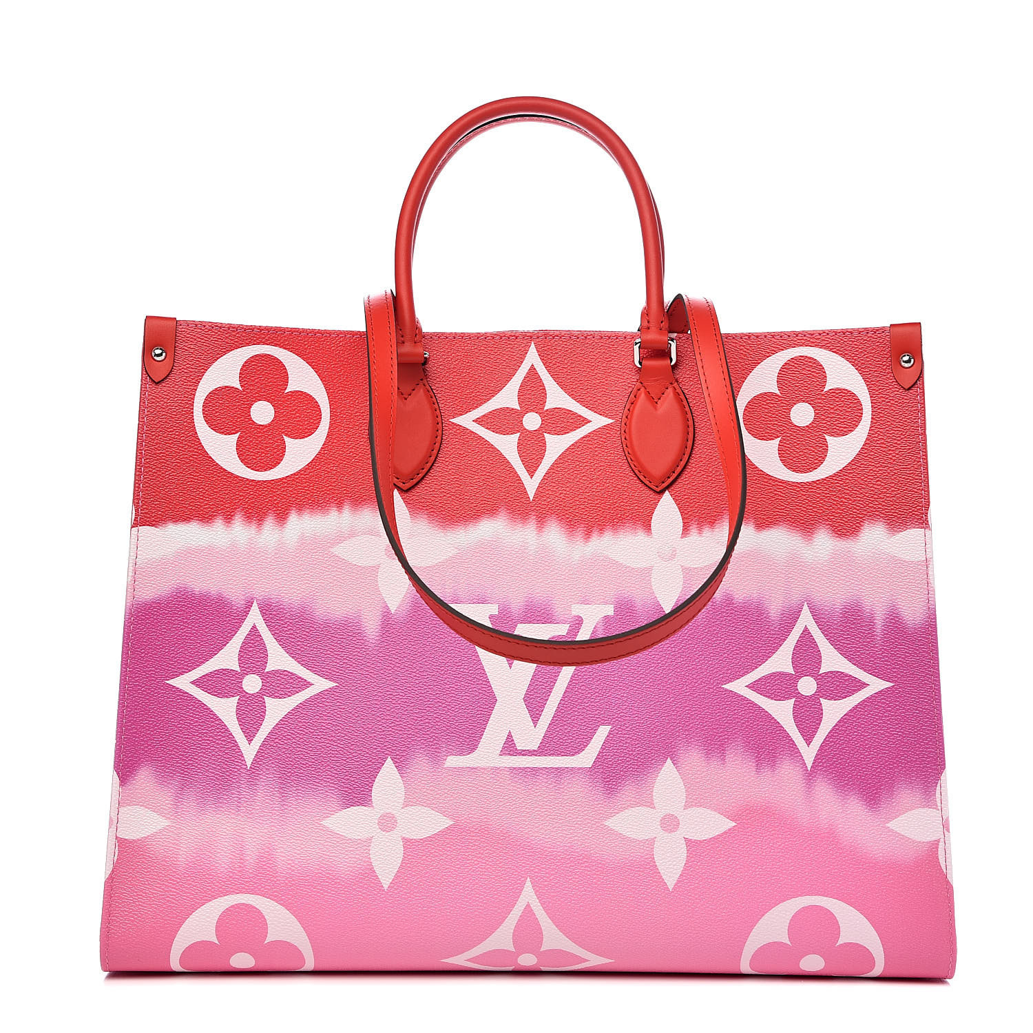 Shop her Louis Vuitton Escale Onthego GM bag and $695 Christian Louboutin Just Nothing Illusion Red Sole Sandals below: