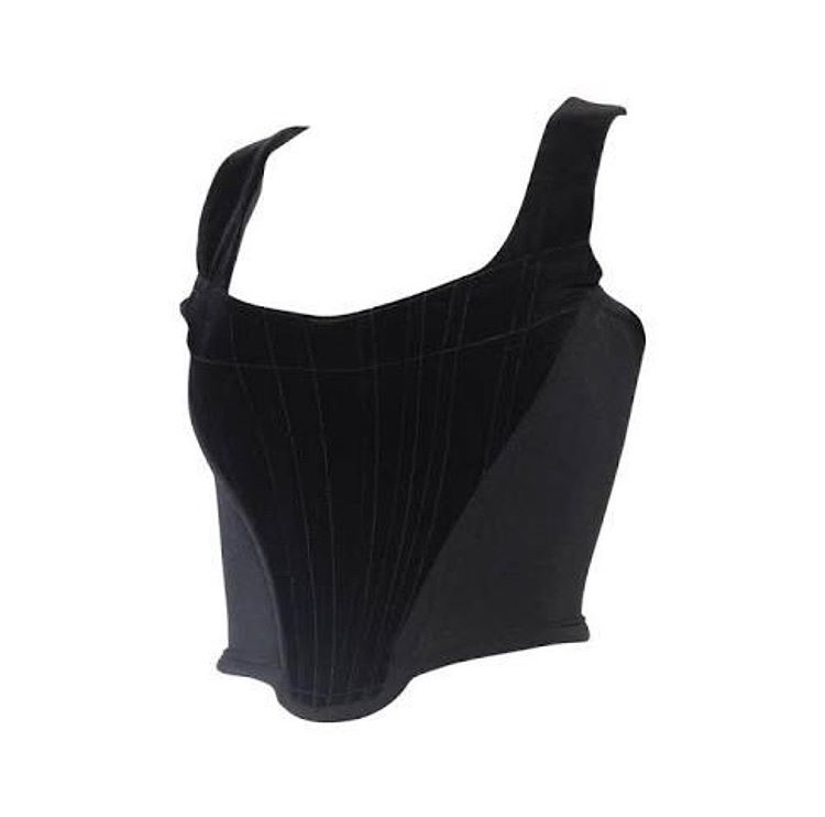 She posed on Instagram recently in a Vivienne Westwood corset (similar to this $1,090 corset from Treasures of NYC) that she wore over a black long sleeved mesh top and black pants.