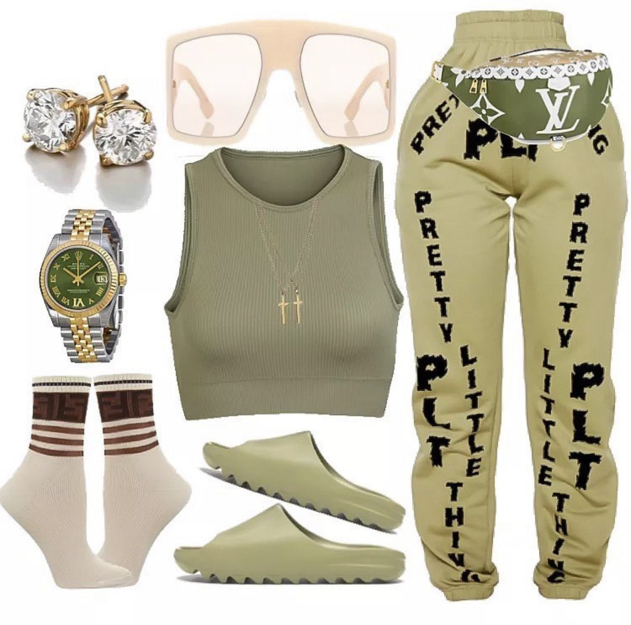 Pretty Little Thing Slogan Print Joggers in Sage green (sold out, but available in Black)