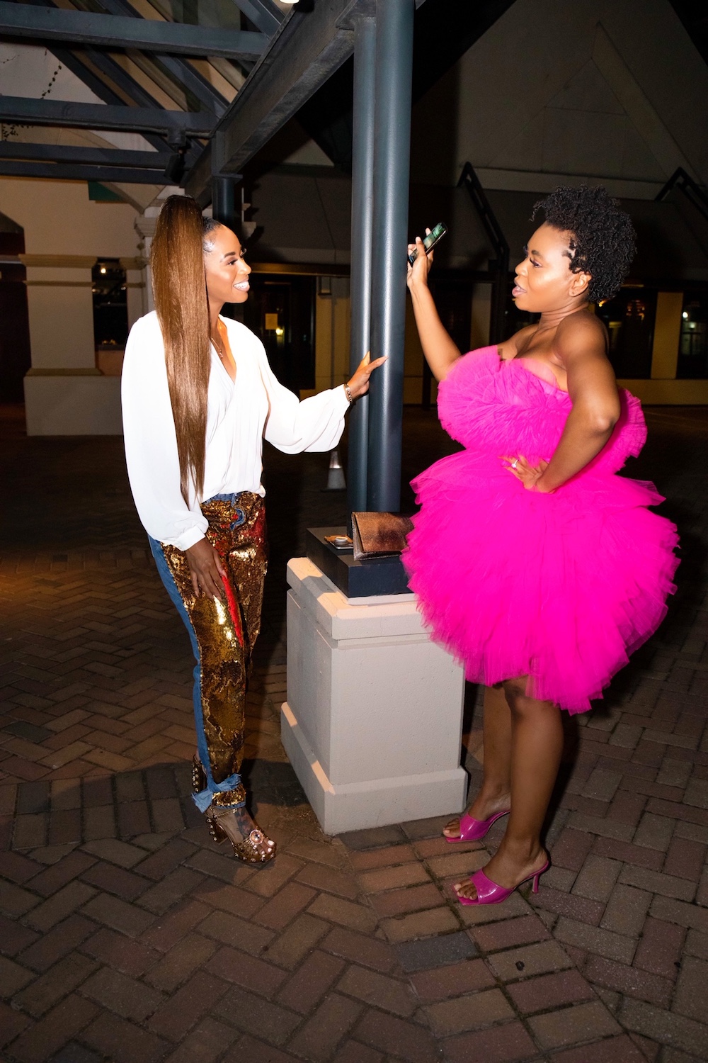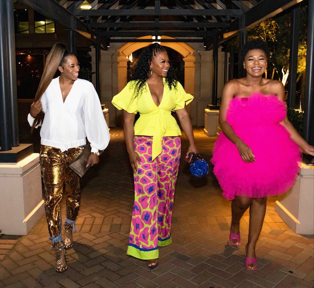Shanita wore a pair of her chic gold sequined jeans. Oyemwen wore one of her fabulous party dresses. And I wore a host of FBDshop designers, including a Madam Mystique top, Sai Sankoh pants, and Bruce Glen Baller bag, and Sybgco Shoes.