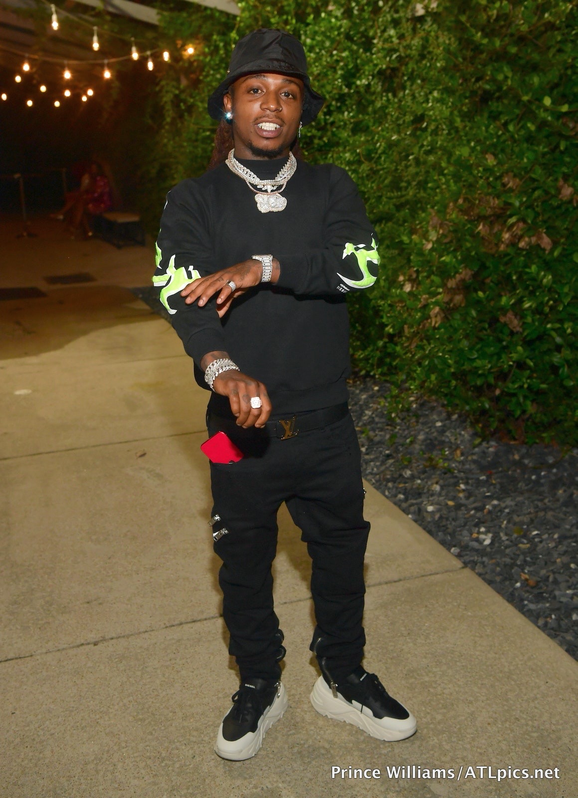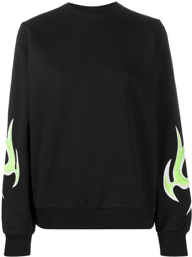 Jacquees wore a $248 black embroidered sweat shirt by Diesel. Which featured neon green flames on the sleeves.