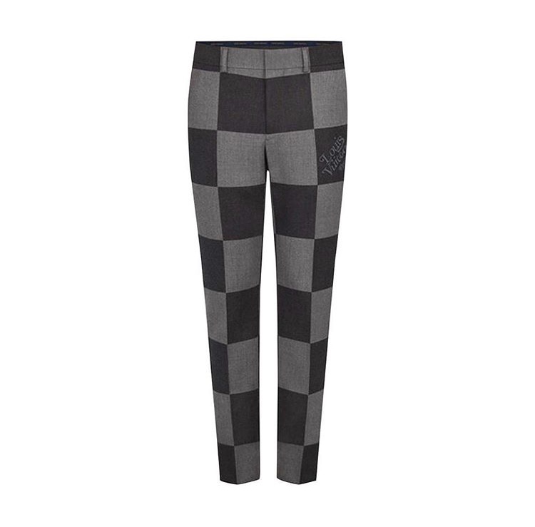 He wore it with Louis Vuitton’s 2020-21FW grey and black wool pants, which are a collaboration with designer Nigo.