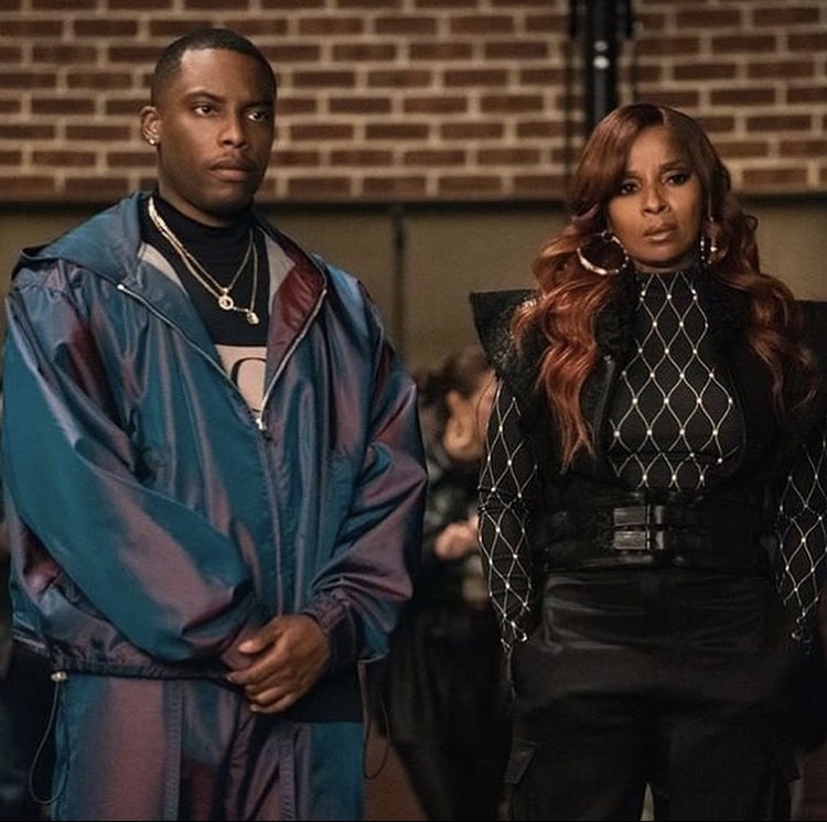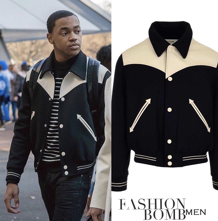 During a scene with Mary J Blige, Micheal Rainey Jr, who plays the main character Tariq, wore a $2,750 black and white Celine Teddy Jacket which also comes in red and white.