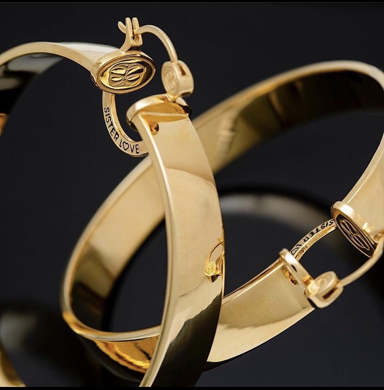 The earrings pictured above are Sister Love’s $200 18k gold Empress hoops, which are currently sold out, but there is a wait list available.