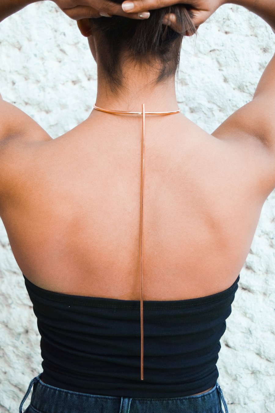 Chloe was spotted in Versace Resort 2021 accessorized with Nina Berenato‘s $50 Lip Cuff and $240 Bar Necklace.