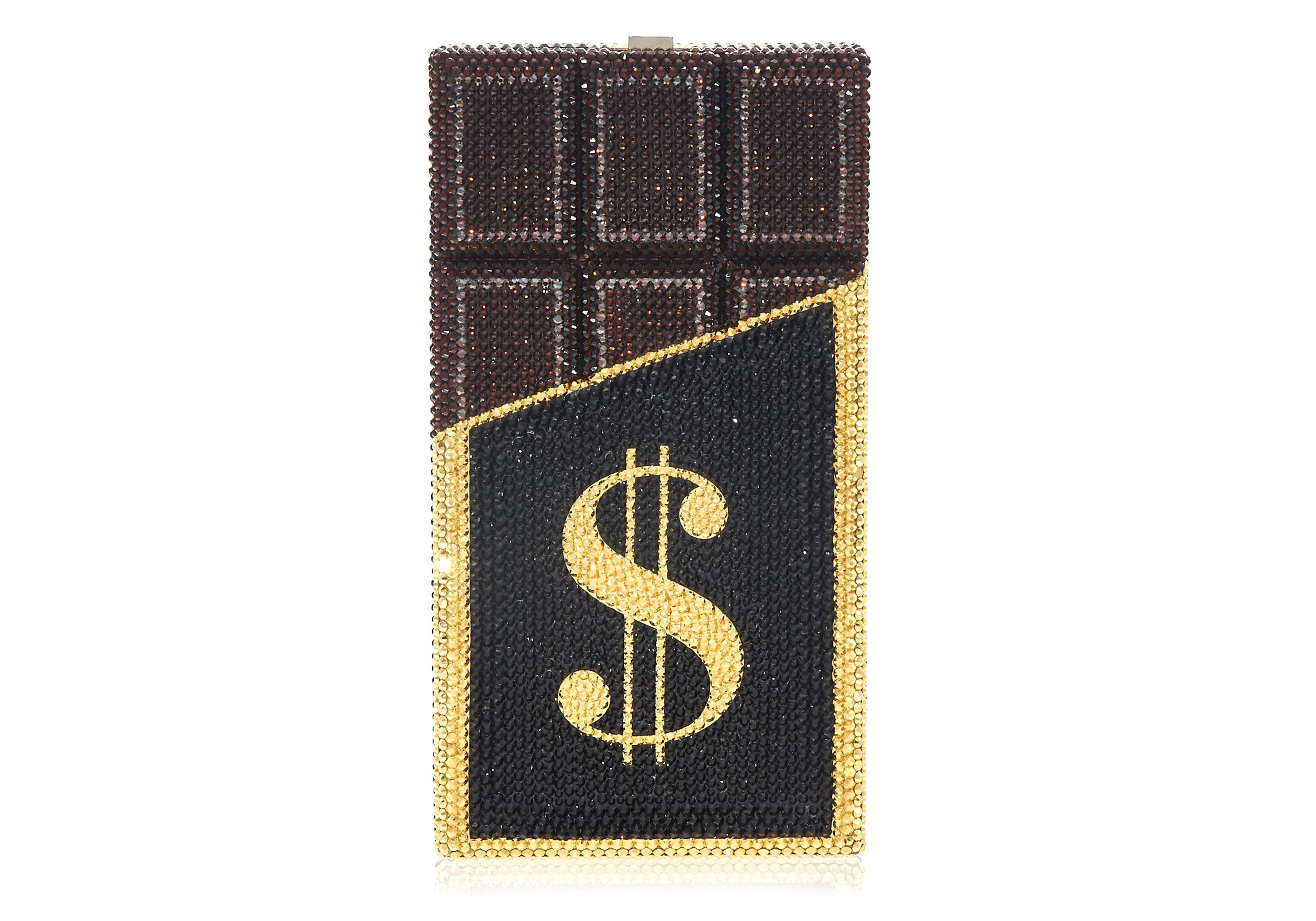 Shop Tiny’s Judith Leiber Candy Bar Rich and Delicious Bag and Rene Caovilla jeweled caged sandals below: