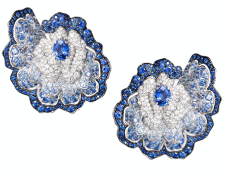 Her earrings have 5.12 cts -or Blue Sapphire, 2.86 cts of White Diamond, and 18K of White Gold.