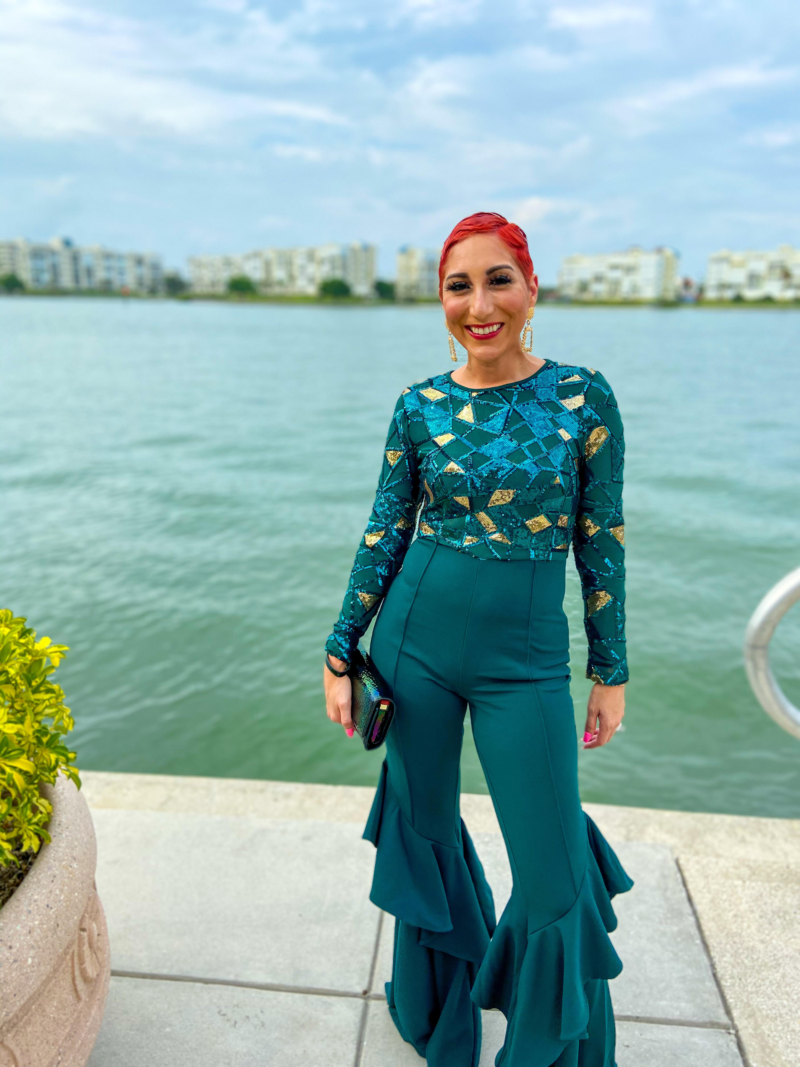 She writes, “I’m a Miami girl living in Tampa. Full Time working wife and Mama of 4 who loves to be expressive with bold colors, statement jewelry, and fun pieces. So much so I launched a boutique named Jumpsuits and Jammies with my teen daughter to teach her business and give her some responsibilities and of course to shop what we love! “