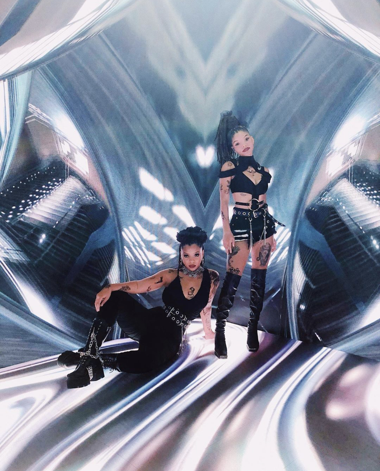 Chloe and Halle are definitely becoming ones to watch when it comes to style and fashion as they are always captivating their world with their mix between chic and edgy looks! Just recently, the duo performed live on Triller in stunning, edgy all black looks. Let’s dive into the details of their looks: