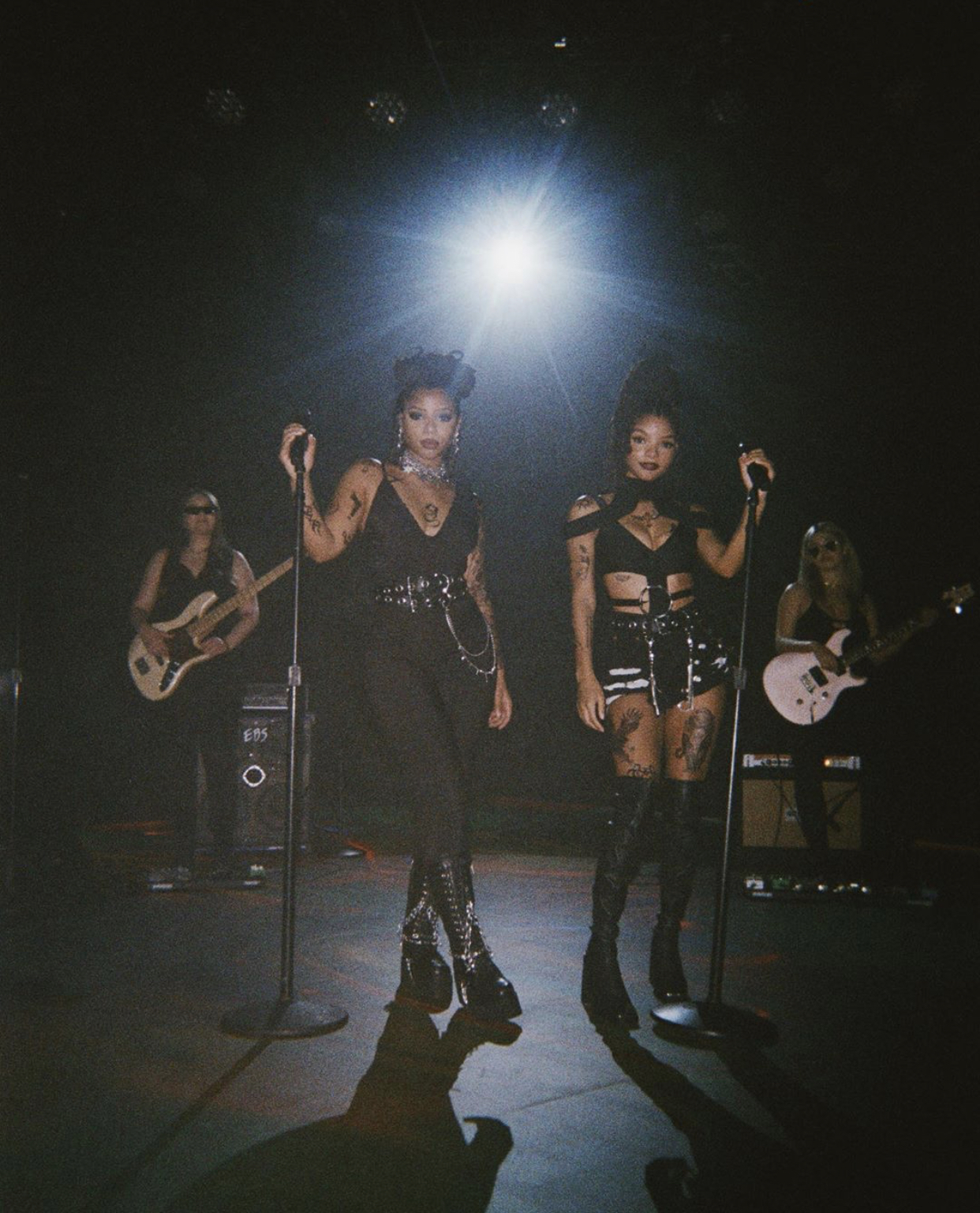 Halle Bailey wore a bodysuit designed by Brazilian designer Leonardo Loreto of Loreto, executed by Márcia Ateliê. Chloe Bailey wore a $179 House of CB “Delilah” jumpsuit. Both looks were styled by Zerina Akers.