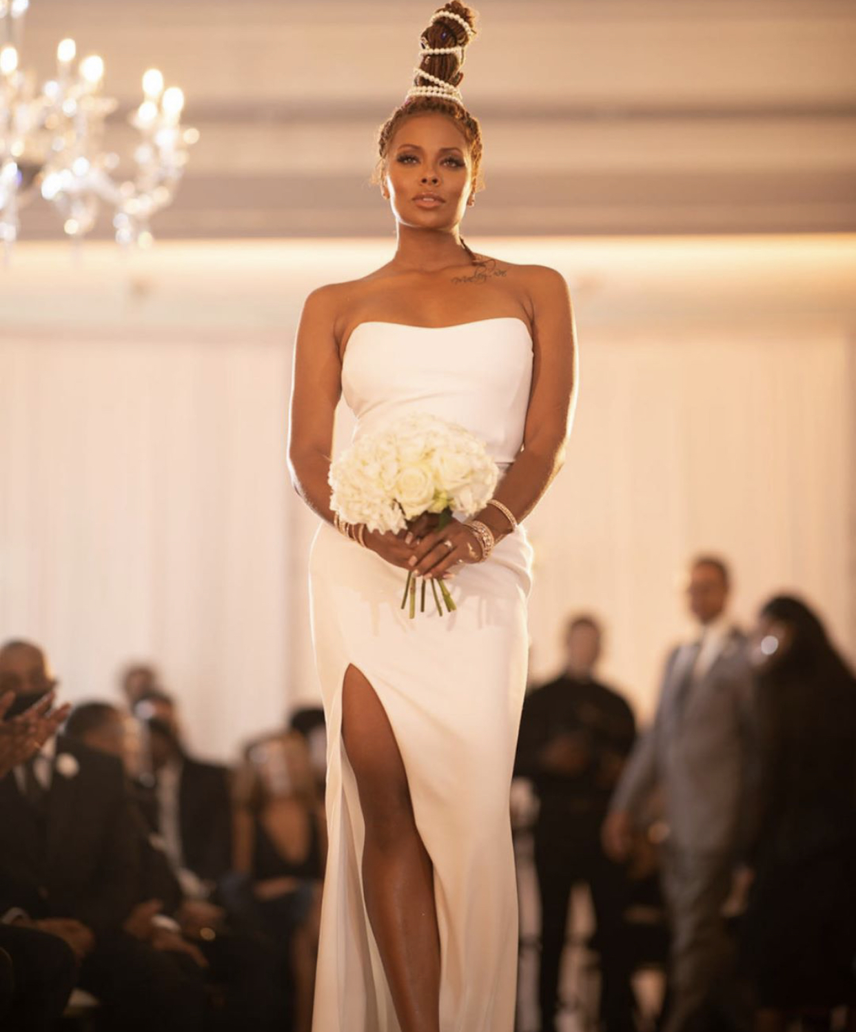 Eva Marcille wore Katie May while serving as a bridesmaid, styled by Jeremy Haynes.