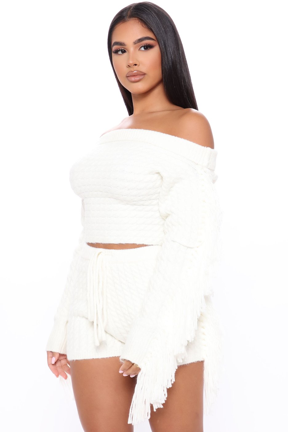 Jayda Cheaves was wearing Fashion Nova’s Fringe Around Sweater Short Set in white. This sweater short set includes an off-the-shoulder sweater and drawstring shorts with fringe detailing on the sides of each garment. For the price of $59.99, you can opt for the white or grey colorway for this set. The Fringe Around Sweater Short Set is the perfect chic set for Fall, pair with knee-high boots and a suede hat for a bomb look!
