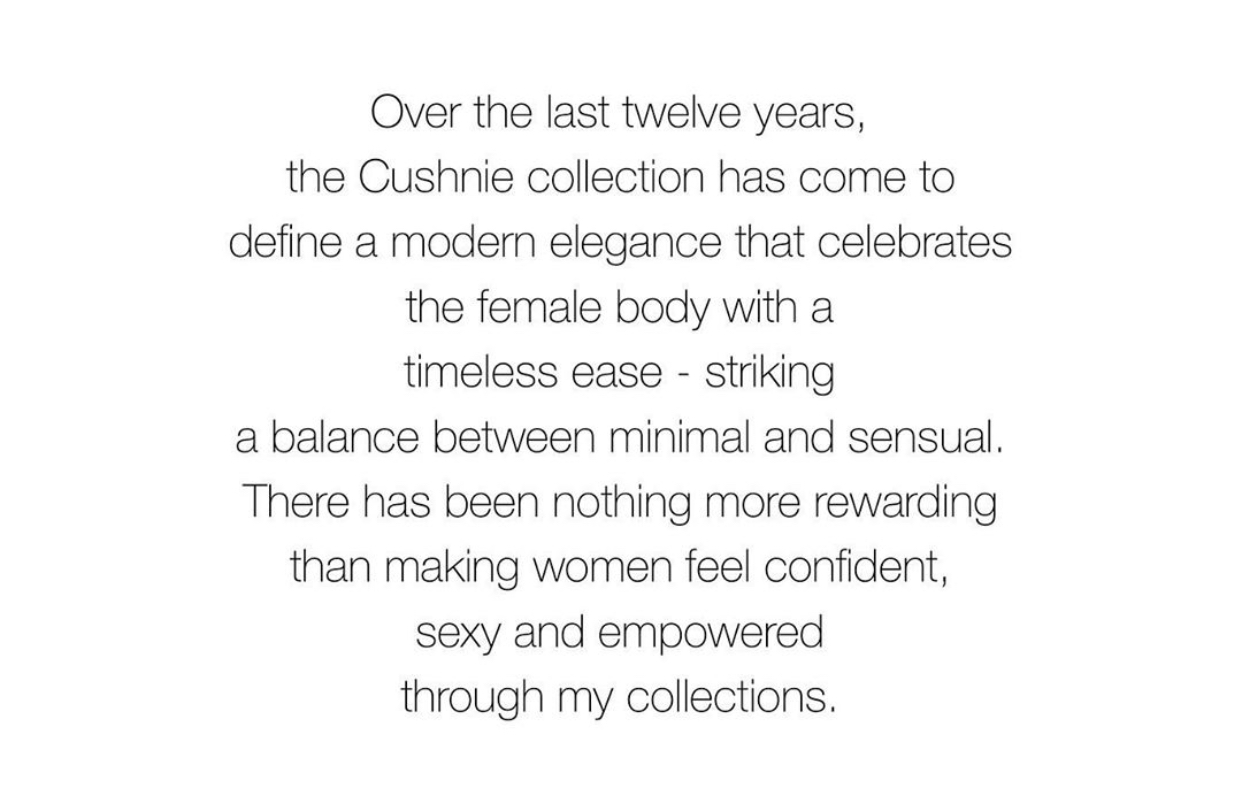 The news was brought to fans through an Instagram post on the Cushnie page. Carly Cushnie expressed, “While this past year has been challenging, it has allowed me the time to reflect, reset and realign my goals and my passion for design has never been stronger. I recognize the power of my presence and will continue to fight for the causes and values I believe in, and will always continue to create.“
