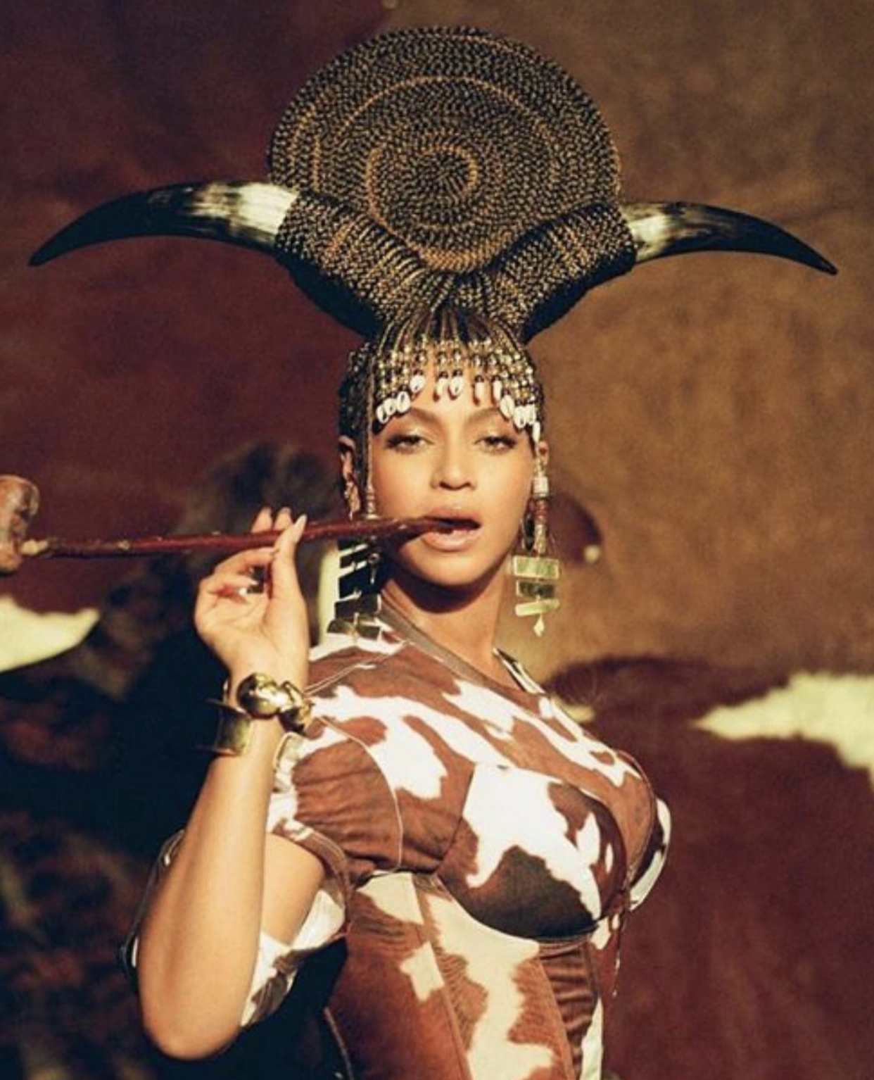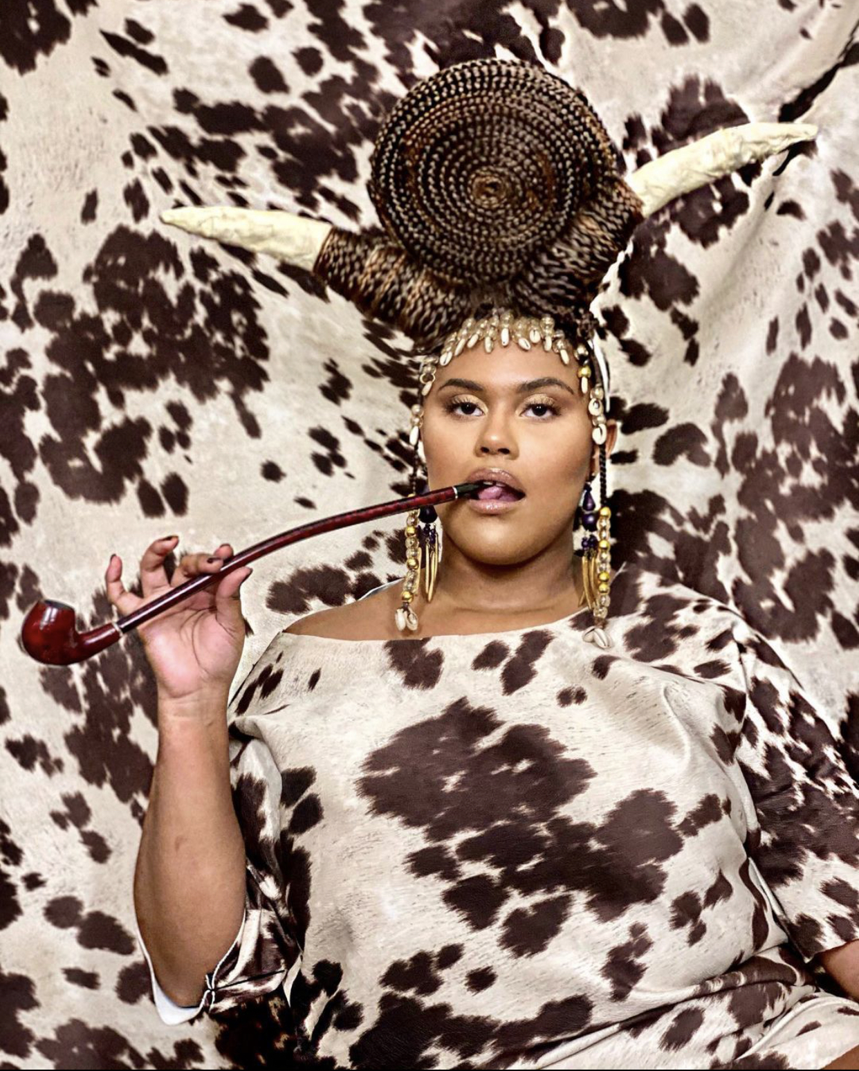 @destinyhash recreated this moment from Beyoncé’s Black is King film with a dress and paper-mâché horns she made! Her hair was done by @lanixbraids and the photos were assisted by @pauldupree.