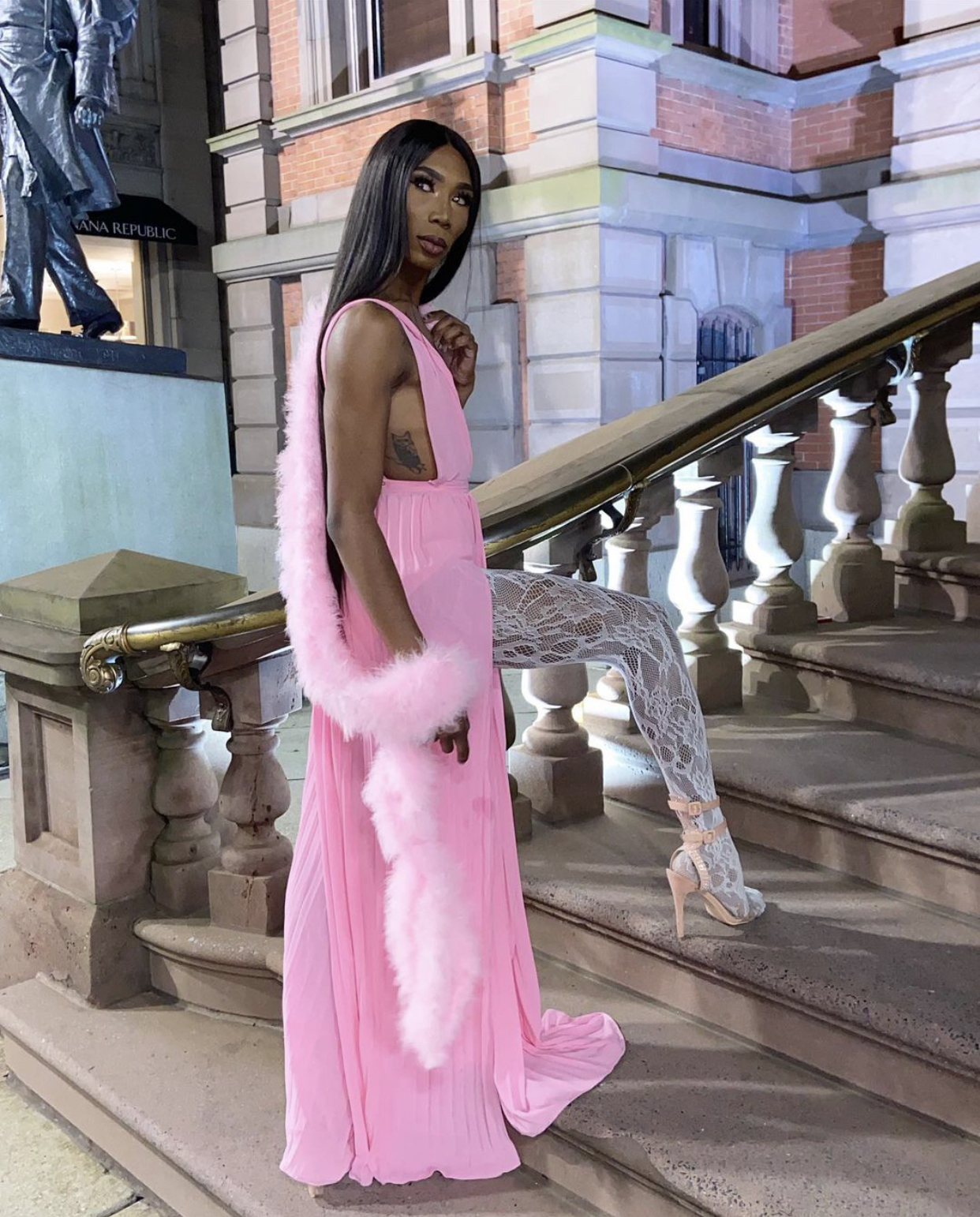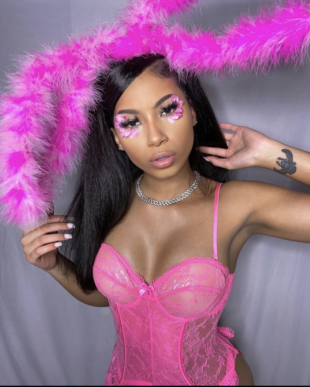 @tationee_ went as a pink bunny using Savage x Fenty lingerie and Fenty Beauty for glam!